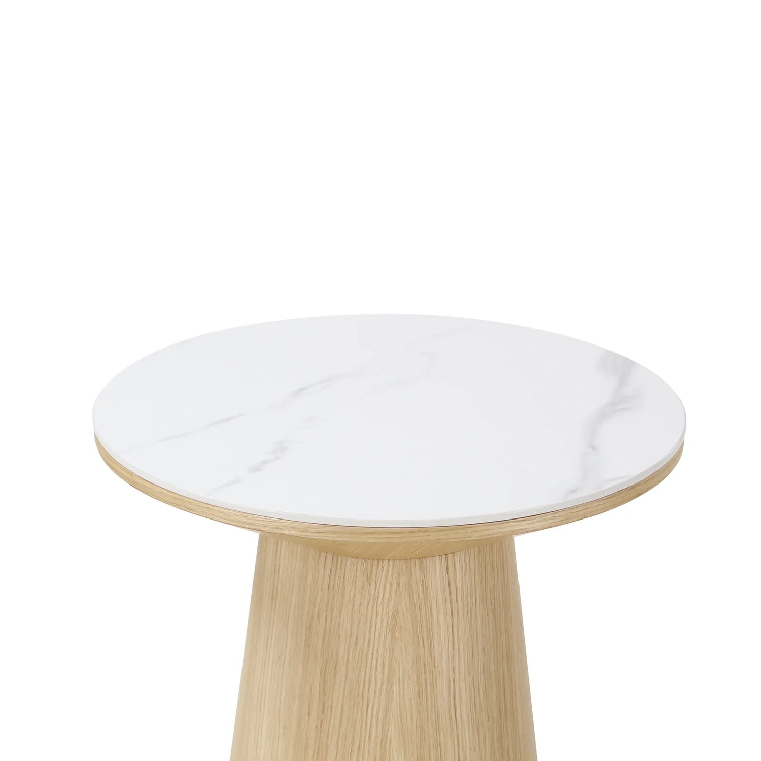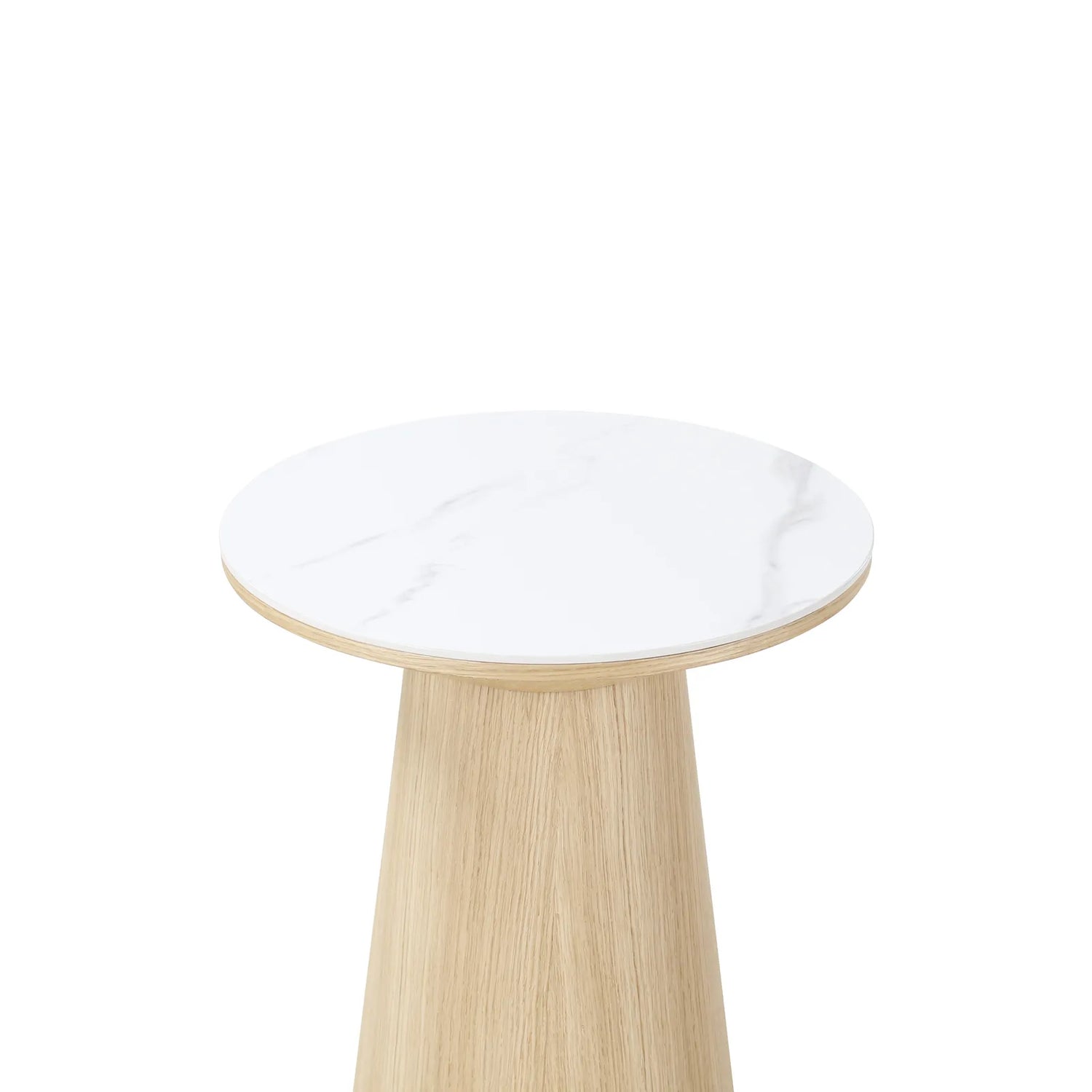 Beistelltisch CLARICE Keramik weiß, Holzbein Eiche natur 48x48 cm