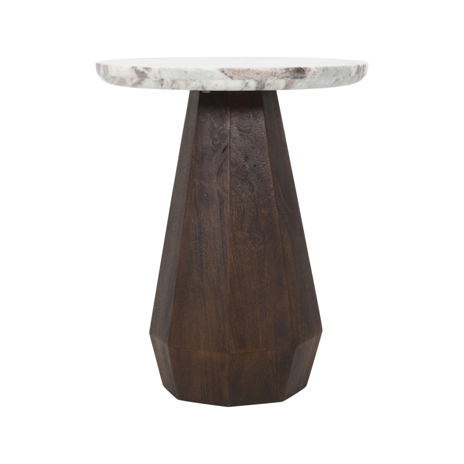 Beistelltisch Oberoy aus Toronto-Marmor und Mangoholz in Blush beige, 45x45x56 cm