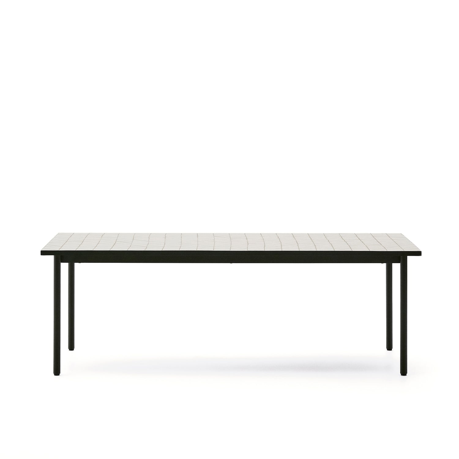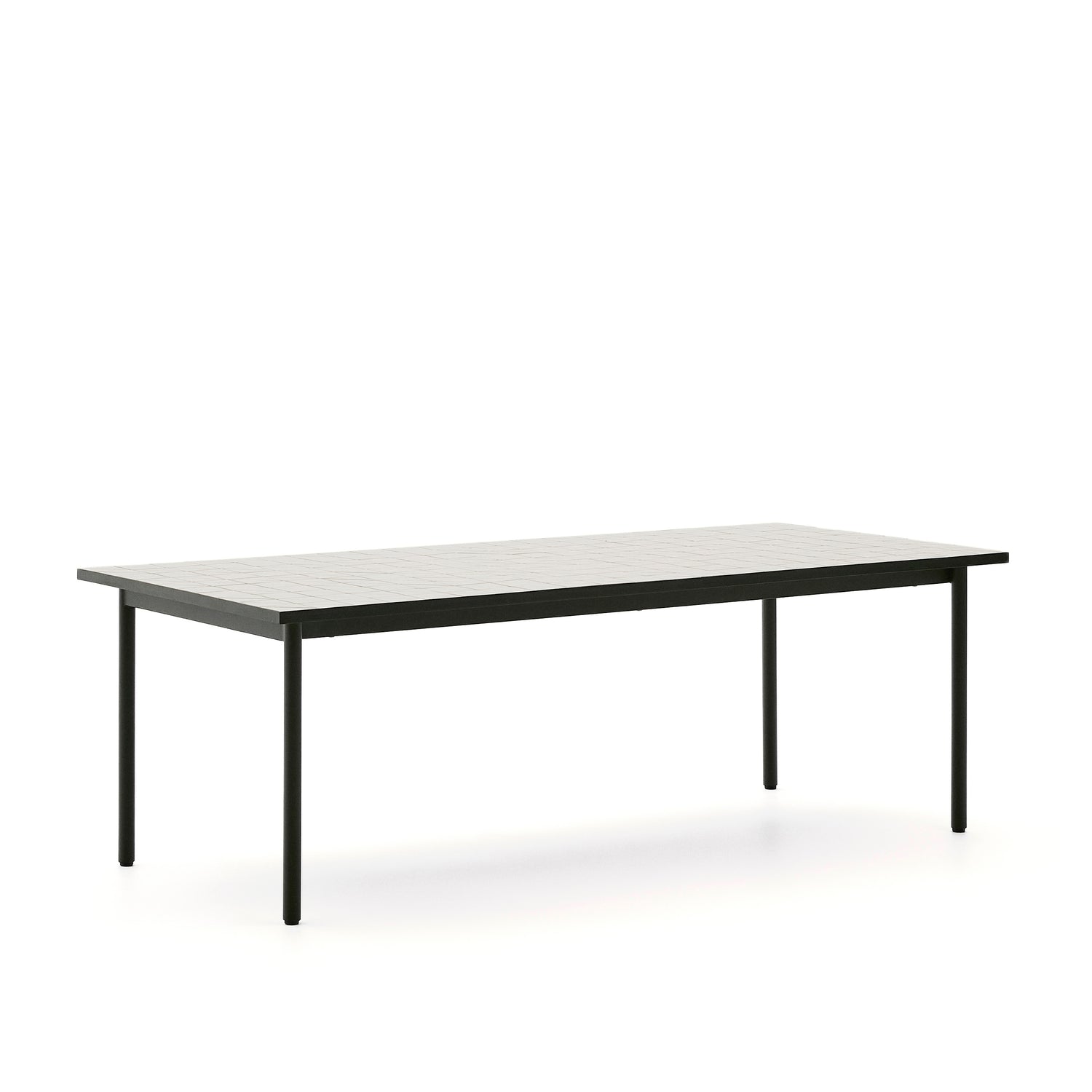Outdoor-Tisch Maurina aus grün verzinktem Stahl mit Kacheln in der Farbe Écru 223 x 101 cm