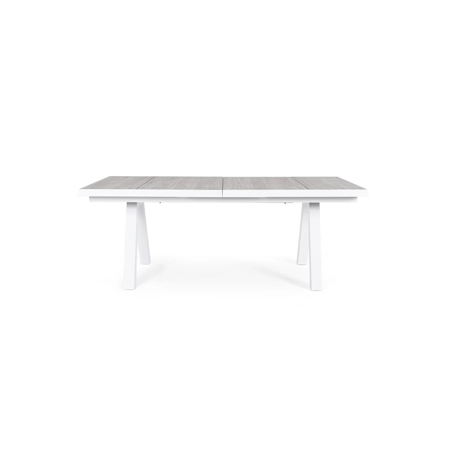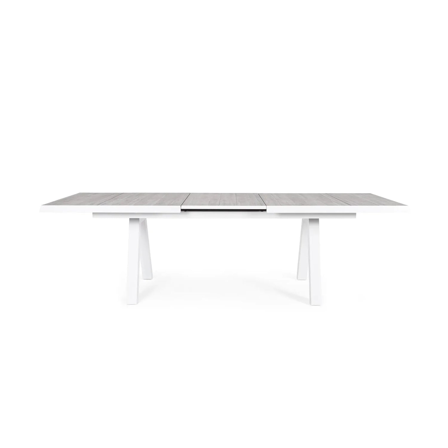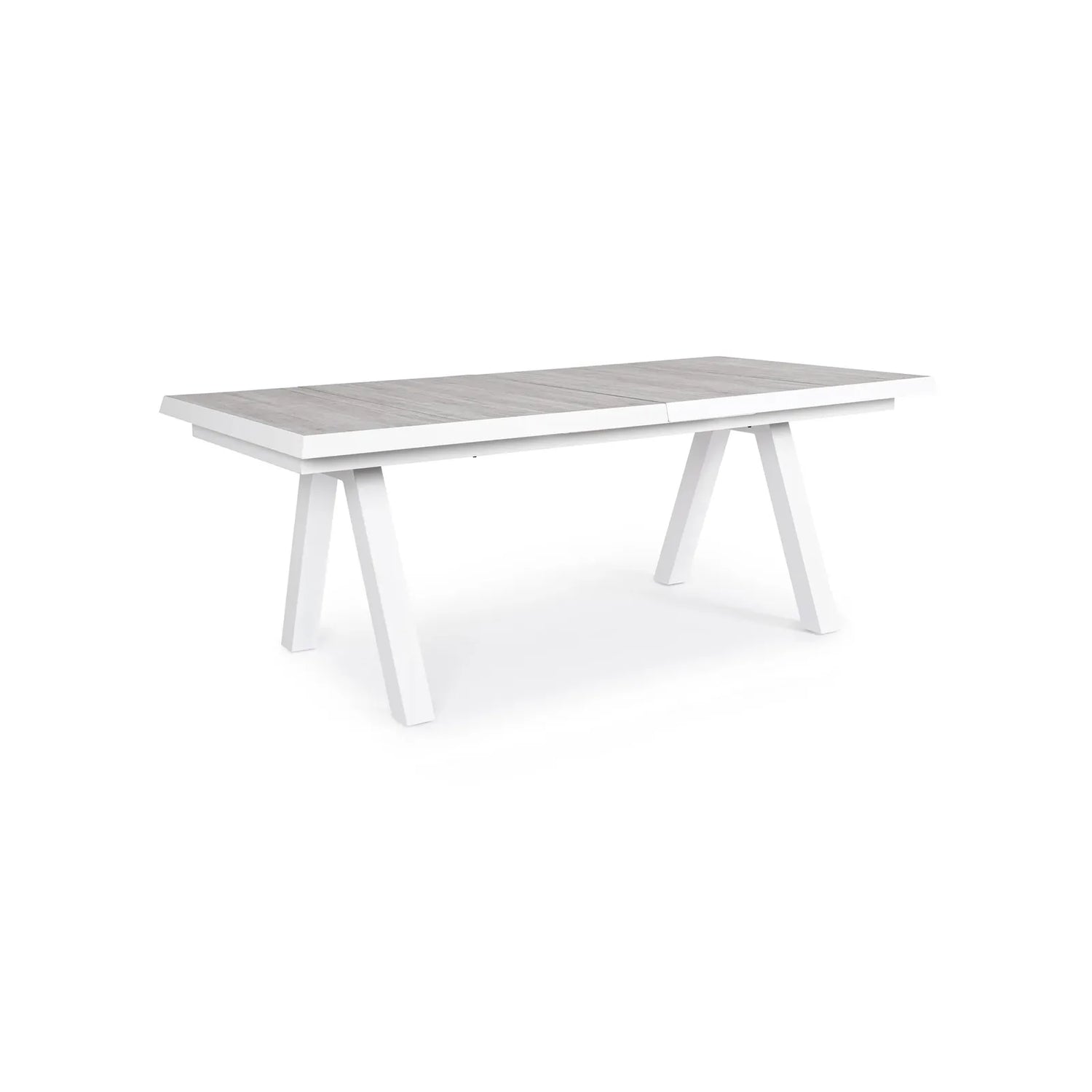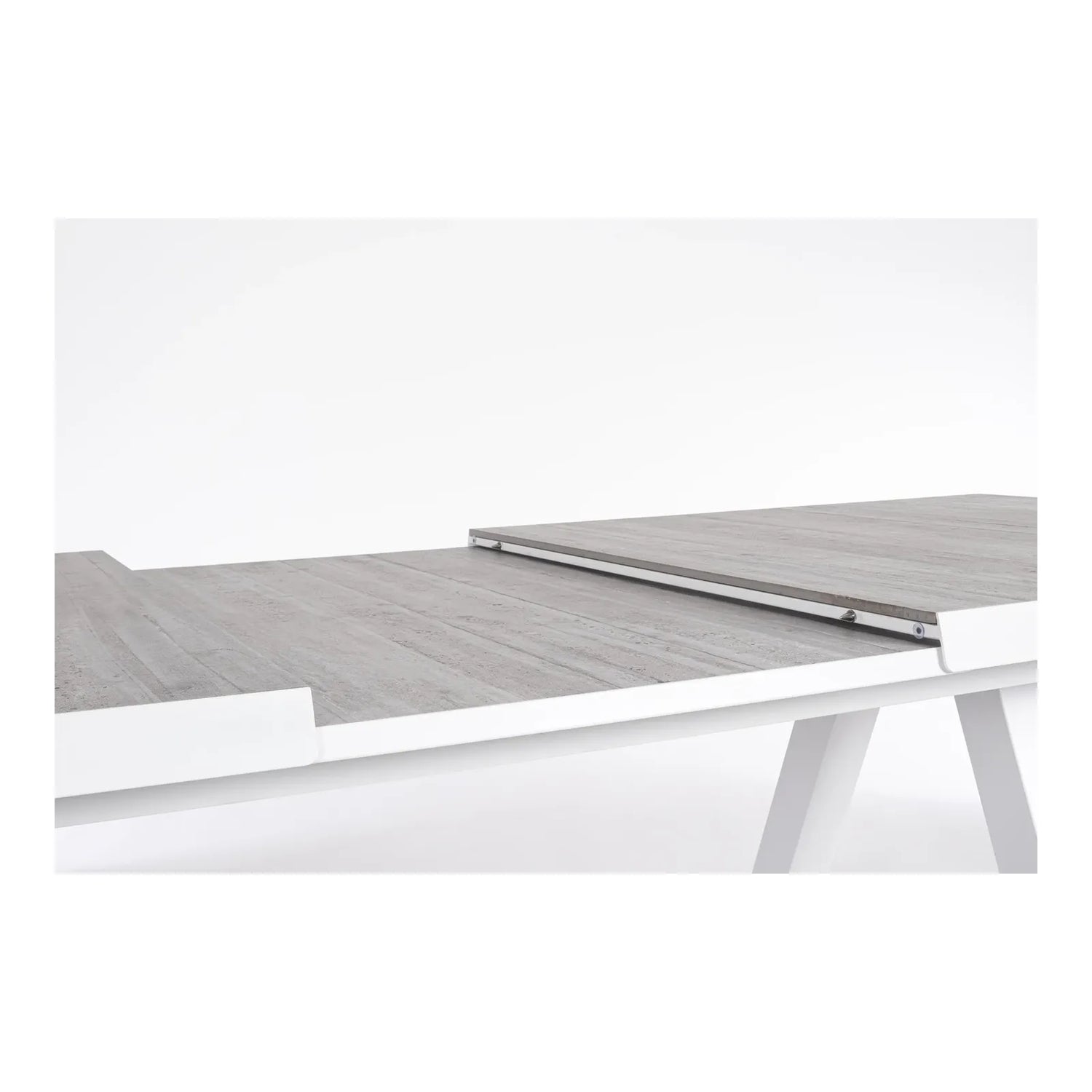 Gestell aus Aluminium mit Polyester Pulverbeschichtung. Tischplatte aus Keramik (Dicke 10mm). Ausziehbar mit Synchro-Auszugsfunktion. Schrauben aus rostfreiem Stahl. Beine zu montieren.