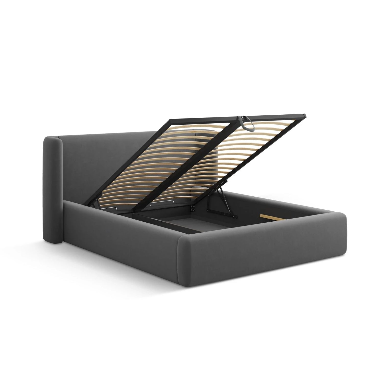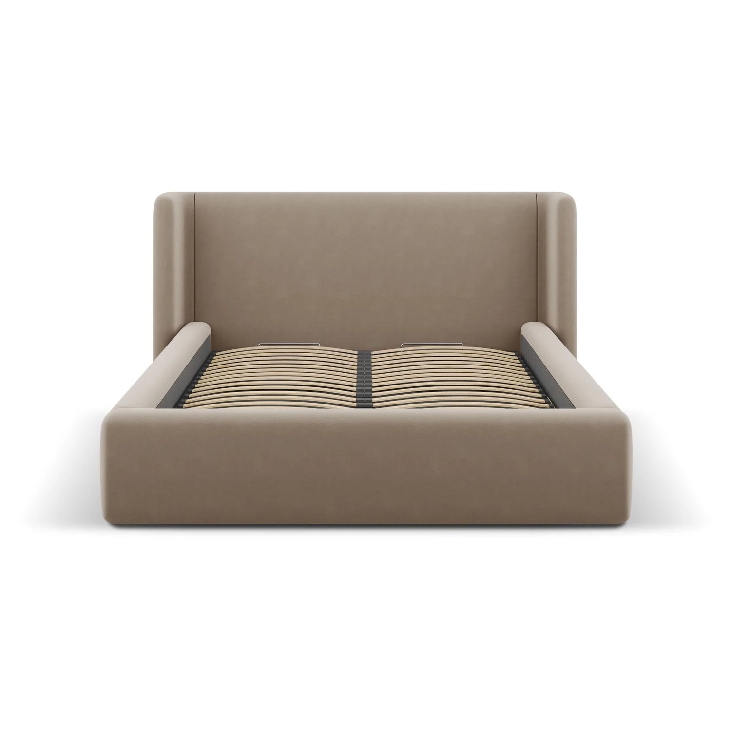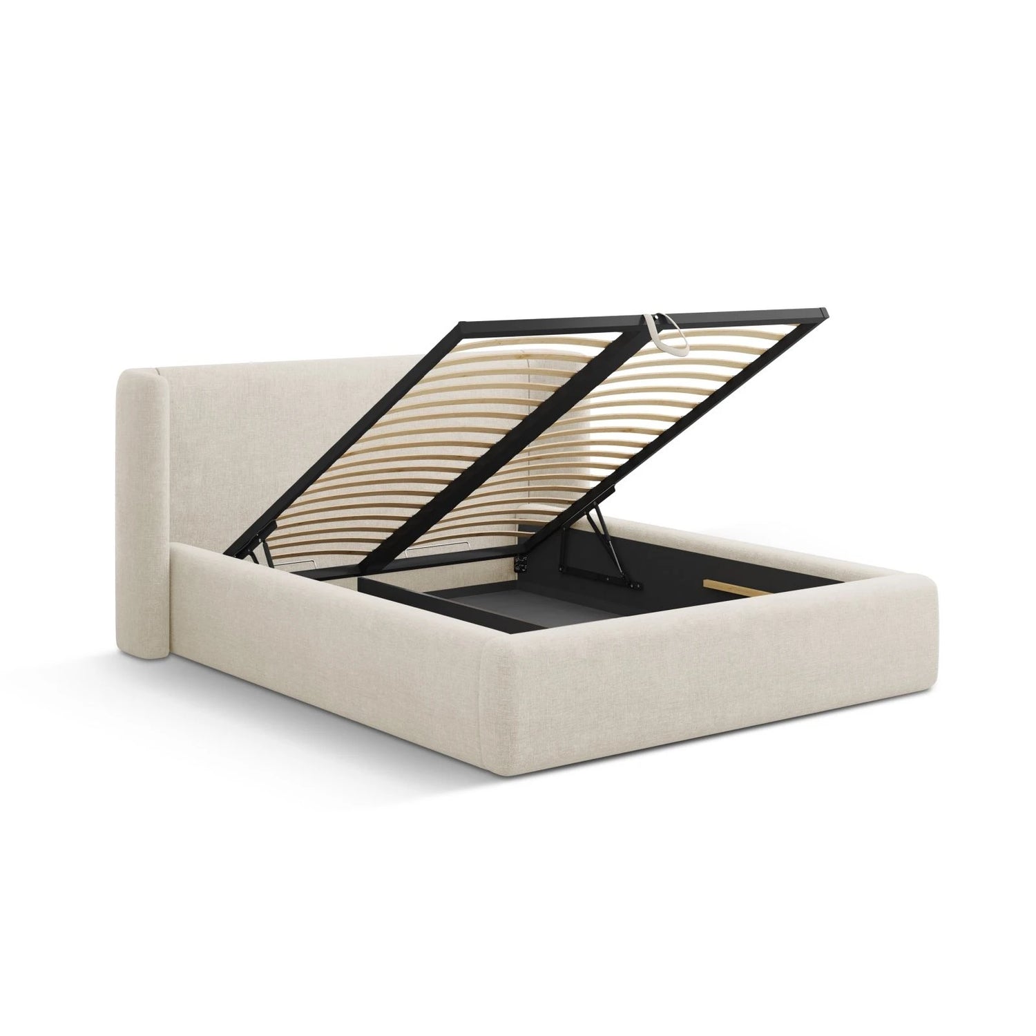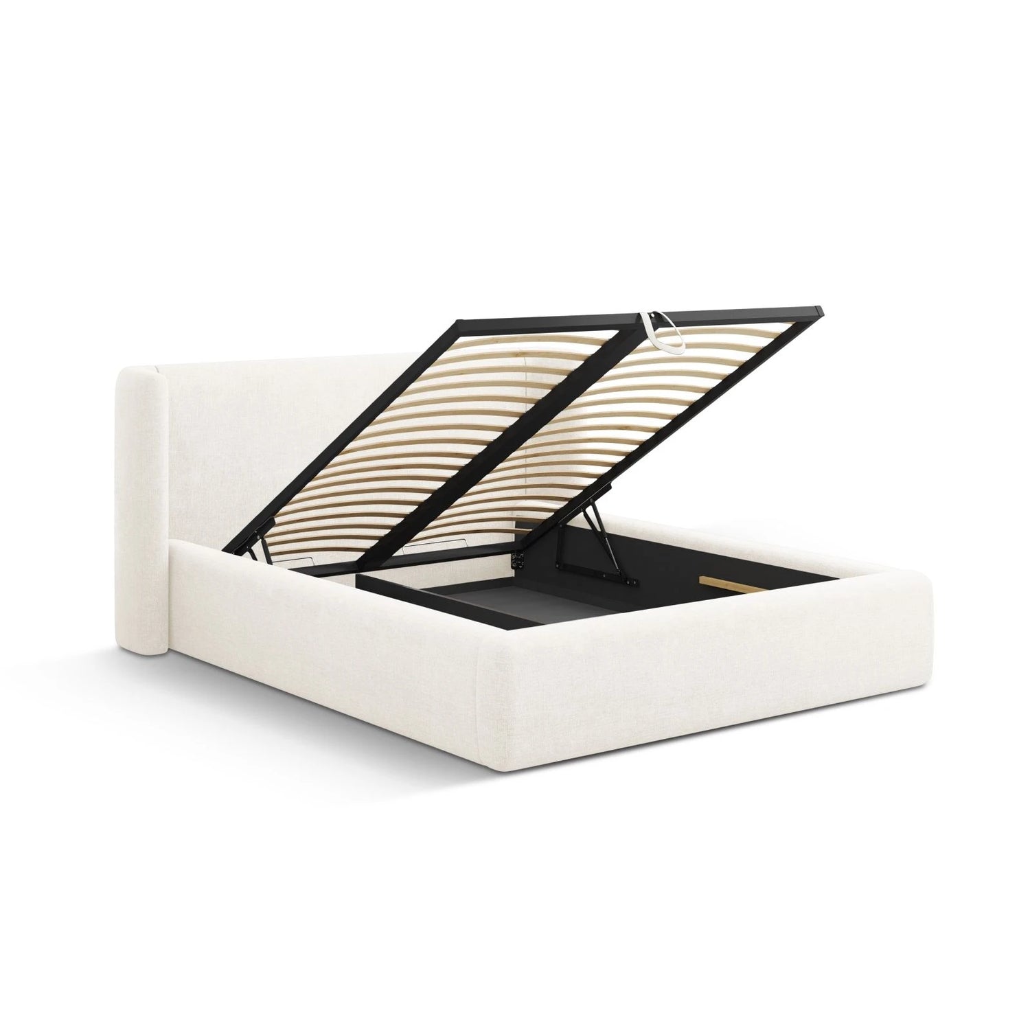 Jolene Bett mit Kopfteil und Stauraum, aus Strukturierter Stoff (Wind 02) in Elfenbein, 160x200 cm