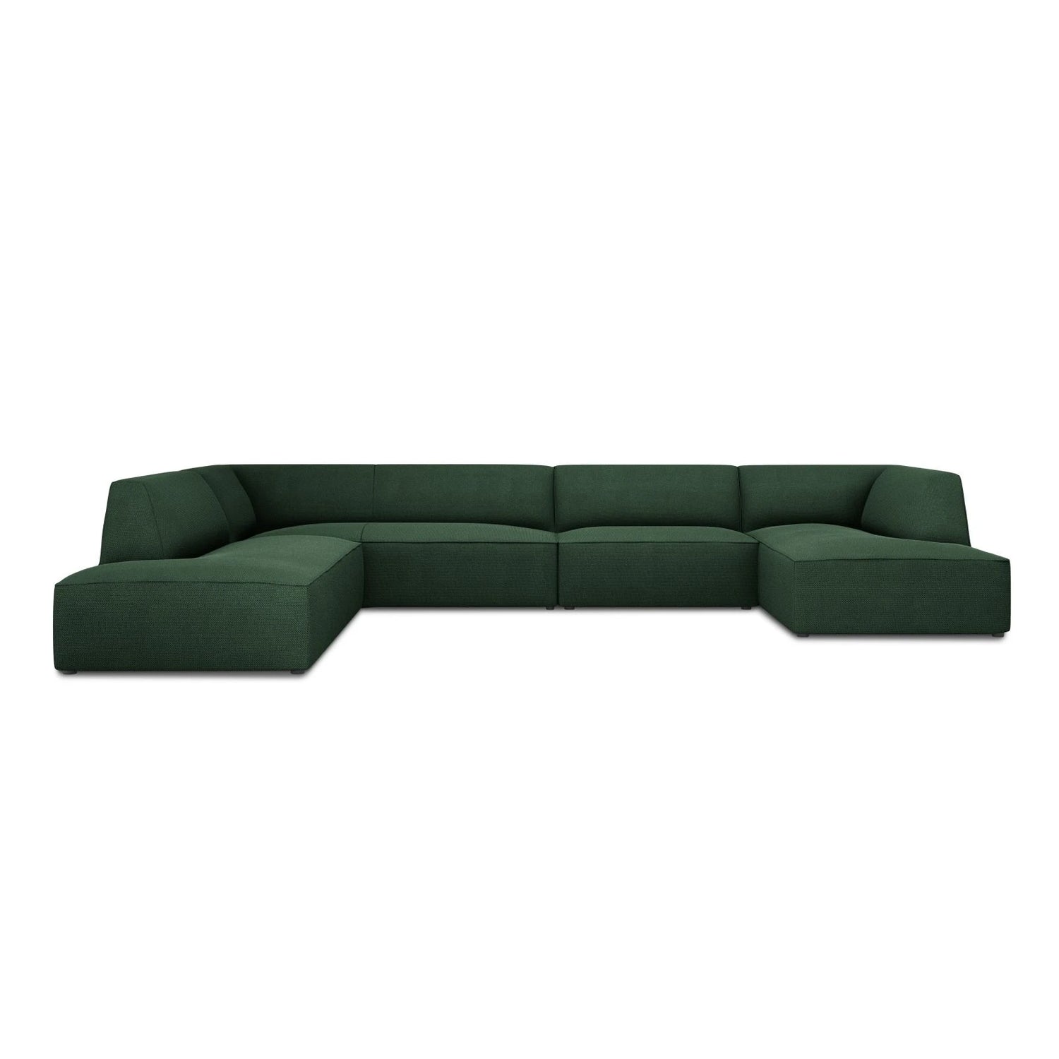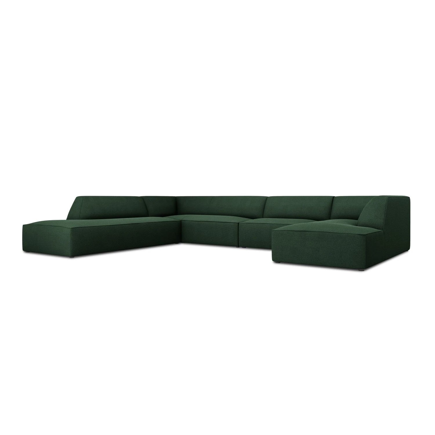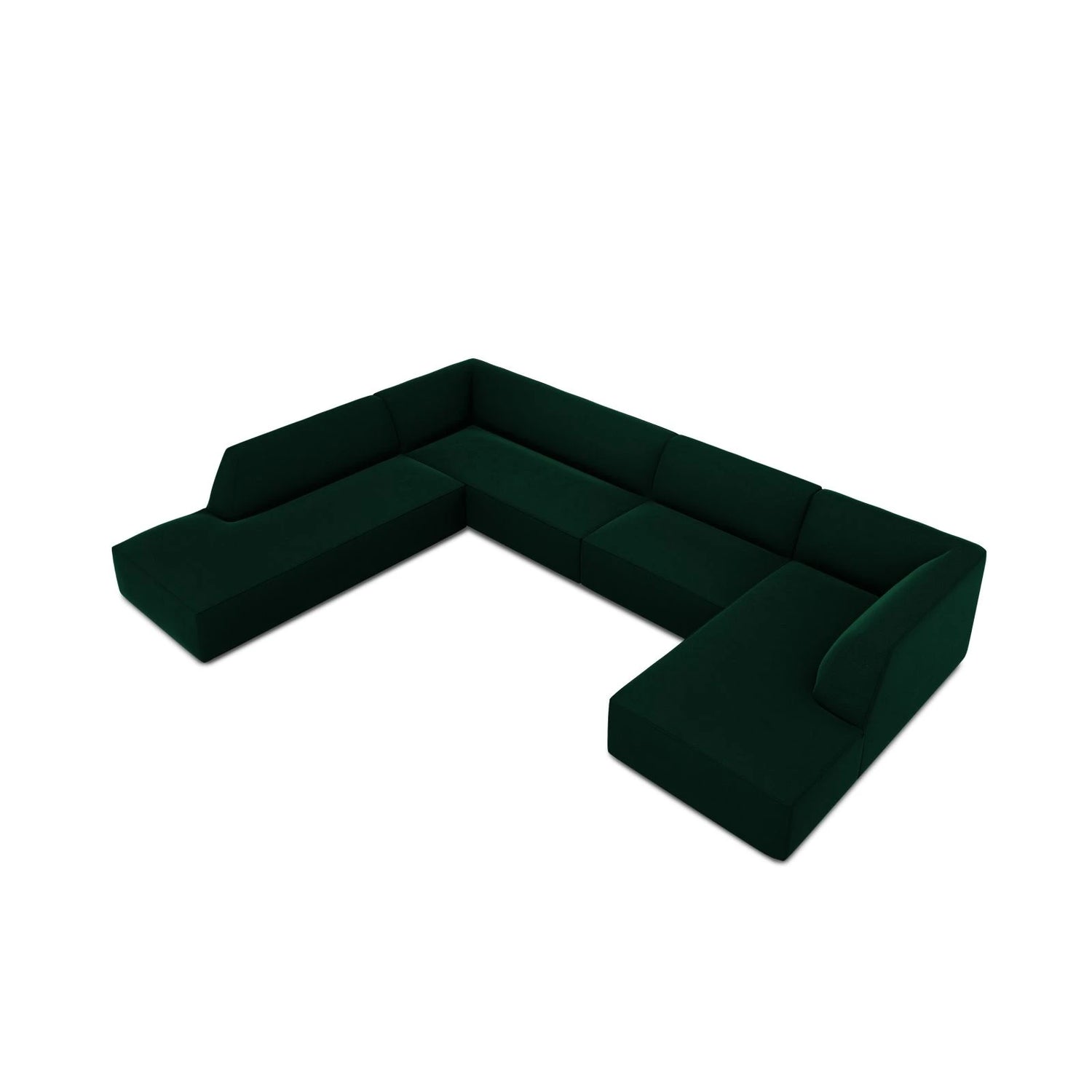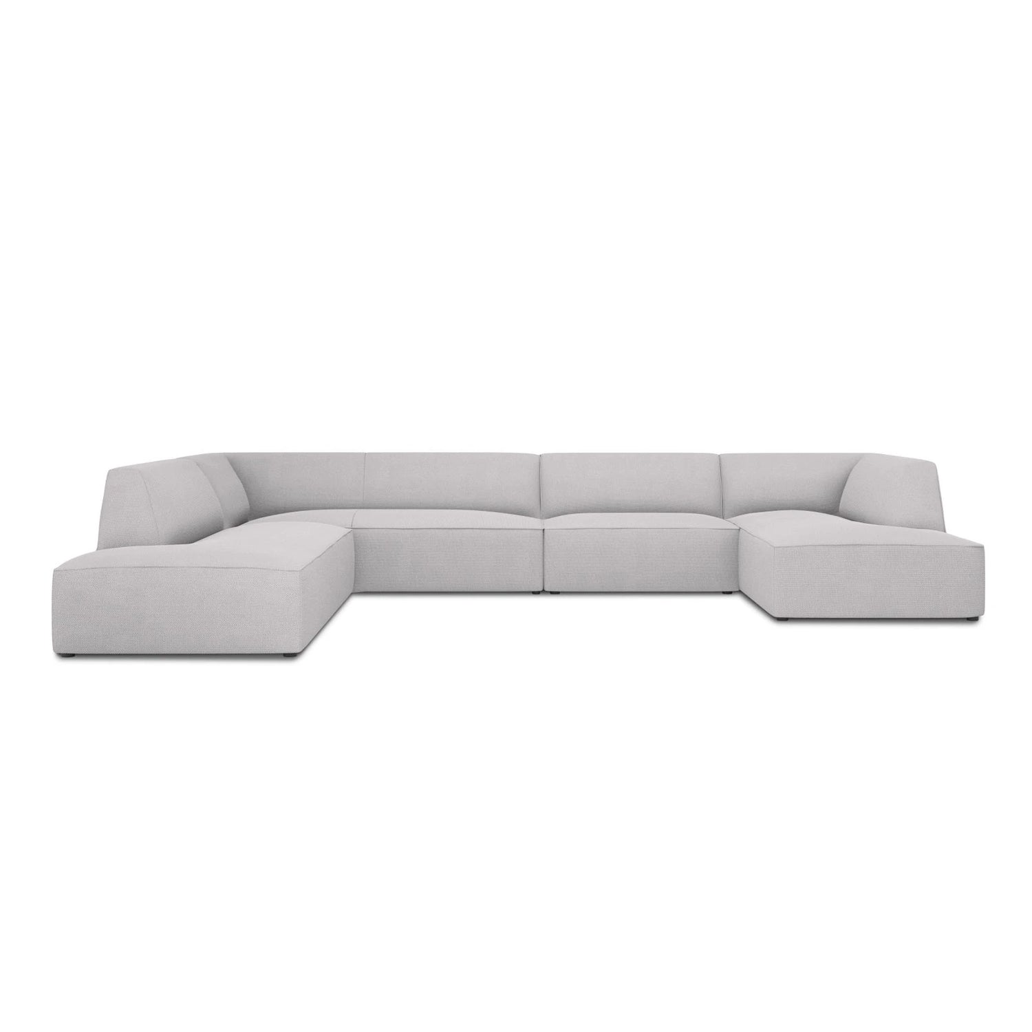 Das modulare 7-Sitzer Panorama-Sofa Ruby von Micadoni (Linke Seite) ist eine perfekte Kombination aus Eleganz und Spitzenqualität. Es eignet sich aufgrund seiner ausgedehnten, erweiterten Silhouette am besten für große Wohnräume. Die rechteckige 7-sitzige Sitzfläche ist sowohl belastbar als auch stabil, und die breiten Rückenlehnen schaffen eine Form mit perfekten Proportionen. Das Sofa Ruby bietet reichlich Sitzgelegenheiten und sieht dabei sehr elegant aus. Die Polsterung ist aus angenehm zu greifenden Materialien gefertigt und mit Paspeln versehen. Die Stoffe sind weich, aber abriebfest und damit für eine intensive Nutzung geeignet. Sie können das Sofa mit zusätzlichen Modulen erweitern, die auf den gewünschten Raum und die gewünschte Funktion zugeschnitten sind.