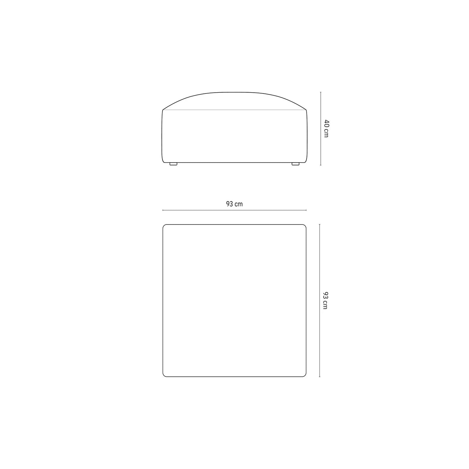 93cm x 93cm x 40cm (Länge x Breite x Höhe)