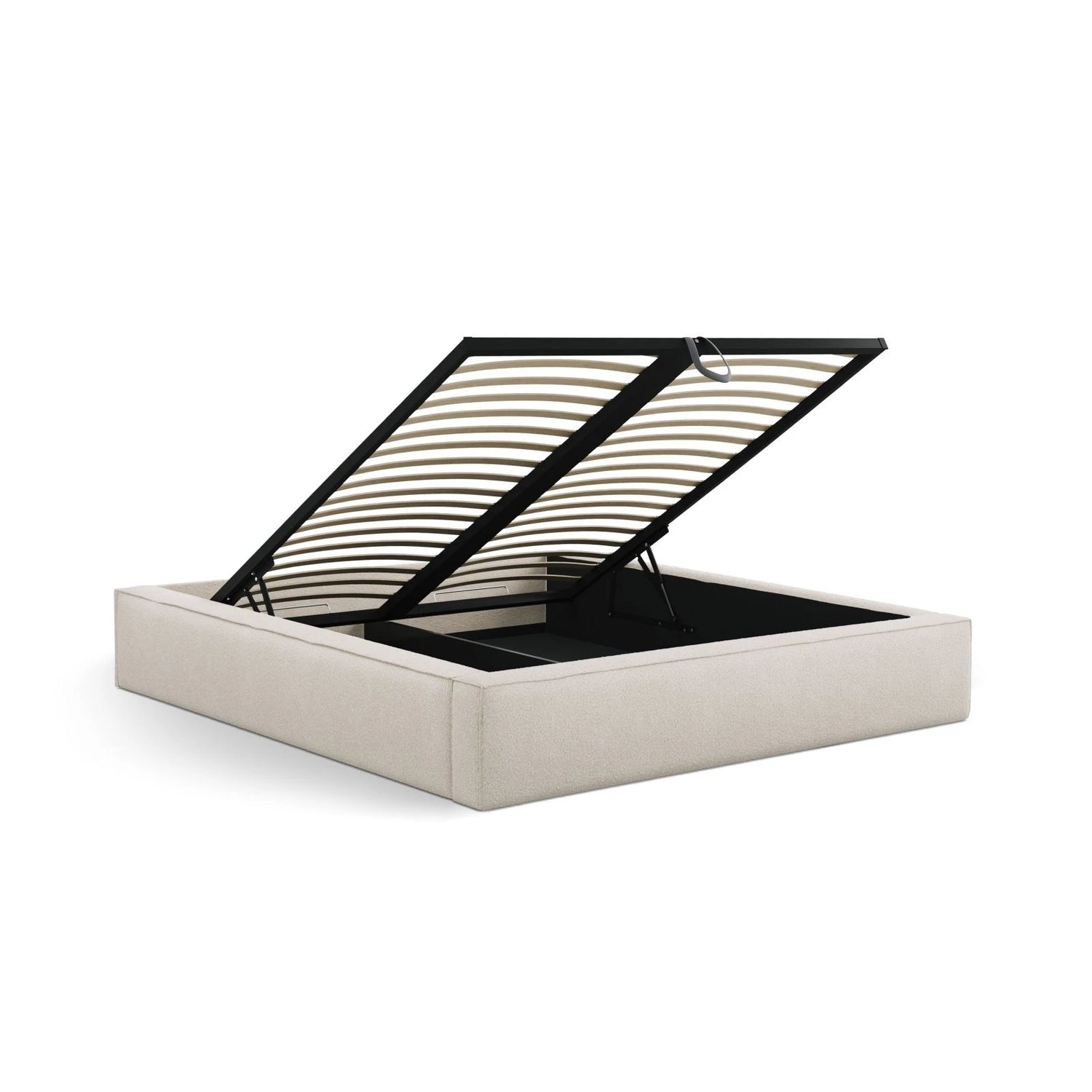 Simon Bett mit Stauraum in Strukturierter Stoff (Pue06) in Beige Melange, 160x200 cm