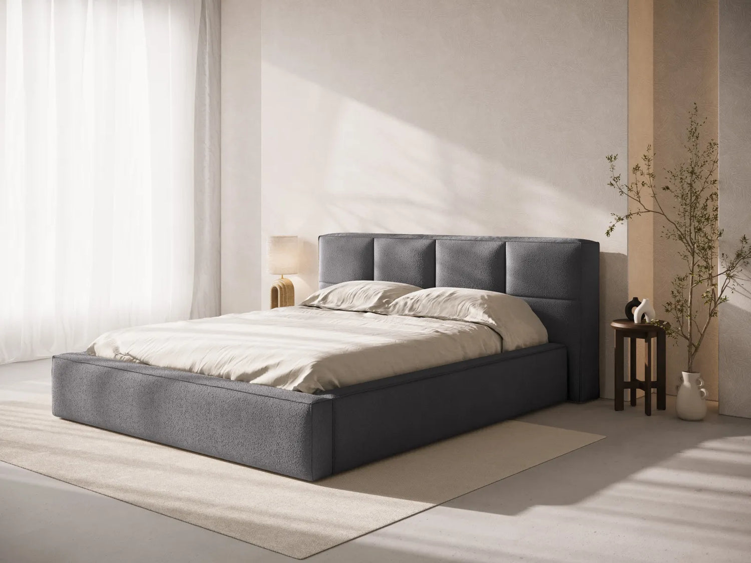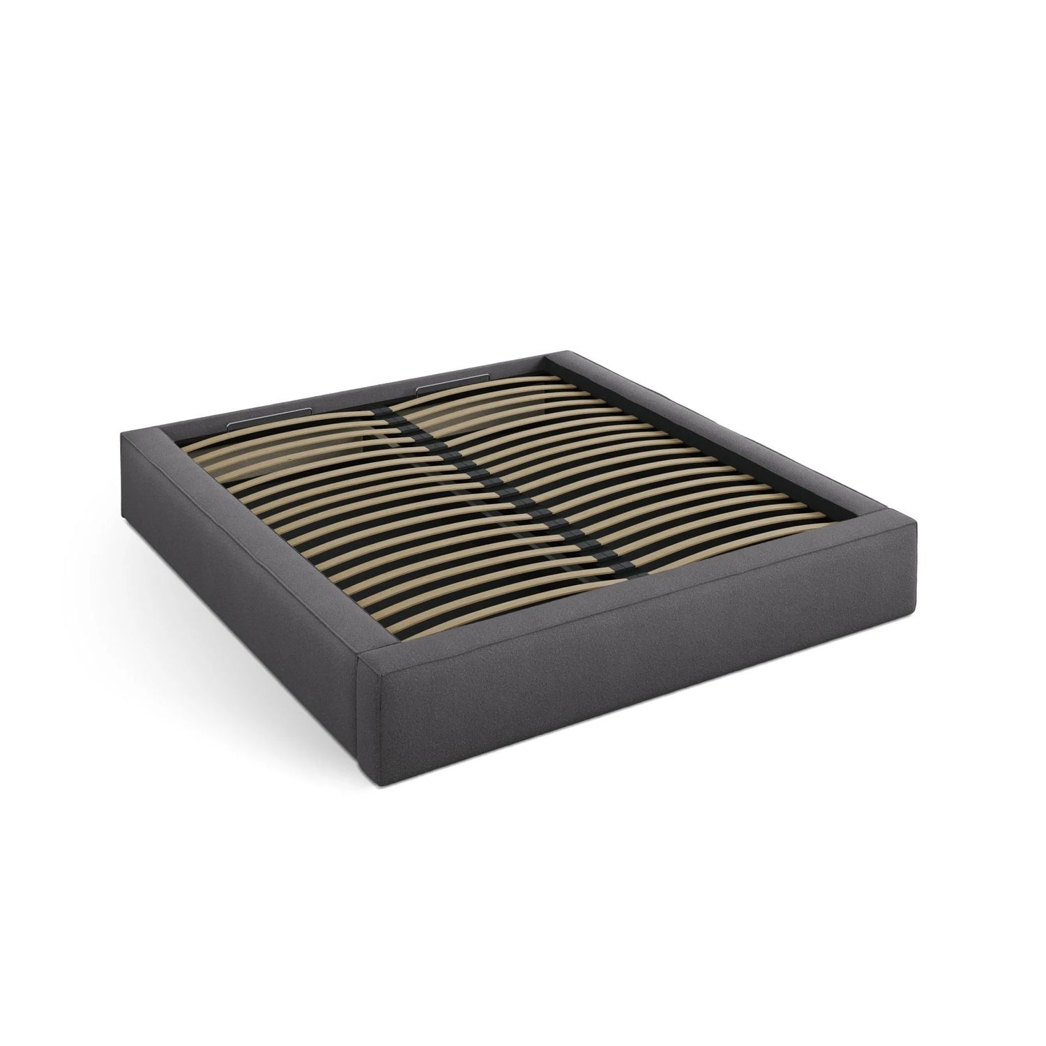 Das Bett Simon von Micadoni für Matratzen in der Grösse 160x200cm, ist unverzichtbar in modernen Schlafzimmern und bietet eine elegante Lösung für Ihren Schlafbereich. Sie können sein elegantes Design mit verschiedenen Kopfteilen anpassen. Das integrierte Staufach sorgt für Ordnung in Ihrem Zimmer und verbindet zeitlose Eleganz mit praktischem Nutzen. - Ein elegantes Bett, das mit dem Kopfteil Olivia oder Darren kombiniert werden kann. - Mit integriertem Staufach, das sich perfekt für die Aufbewahrung von Bettzeug, Saisonartikeln und mehr eignet. - Die kompakte und dennoch stilvoll gepolsterte Rahmenkonstruktion macht es zu einer ausgezeichneten Wahl, um in kleineren Räumen Platz zu sparen oder die Funktionalität in größeren Räumen zu erhöhen. - Der robuste Rahmen mit Gasdruckfedern sorgt für mühelosen Zugang zum Stauraum. - Jeder Simon-Bett wird in Europa mit außergewöhnlicher Handwerkskunst hergestellt und auf Bestellung gefertigt. - Kombinieren Sie den Simon Bettgestell mit dem Micadoni Kopfteil aus unserer Kollektion und einer Matratze, um ein maßgeschneidertes, elegantes Schlafzimmer einzurichten. Die Basis hat eine abnehmbare Rückwand und ist mit Kopfteilen kompatibel; DARREN, JODIE