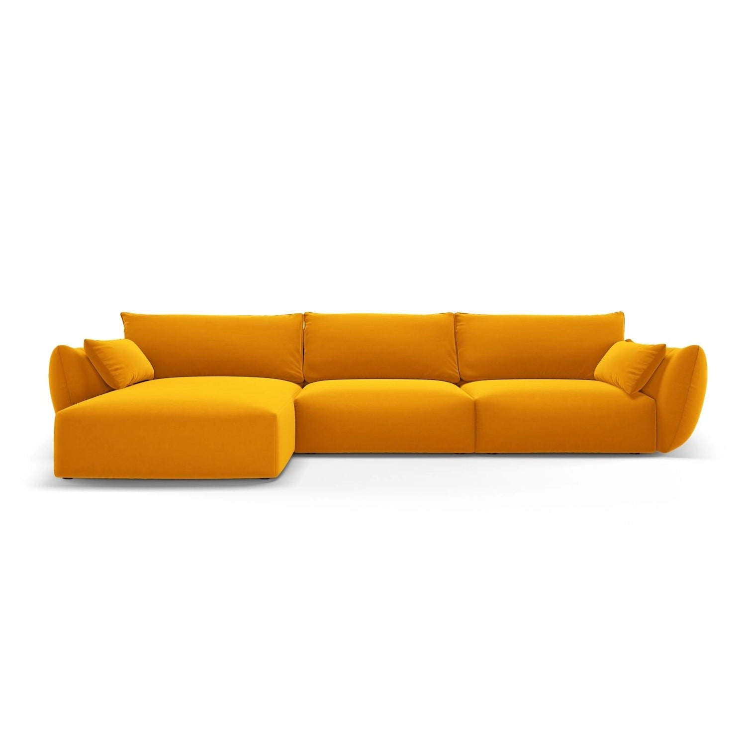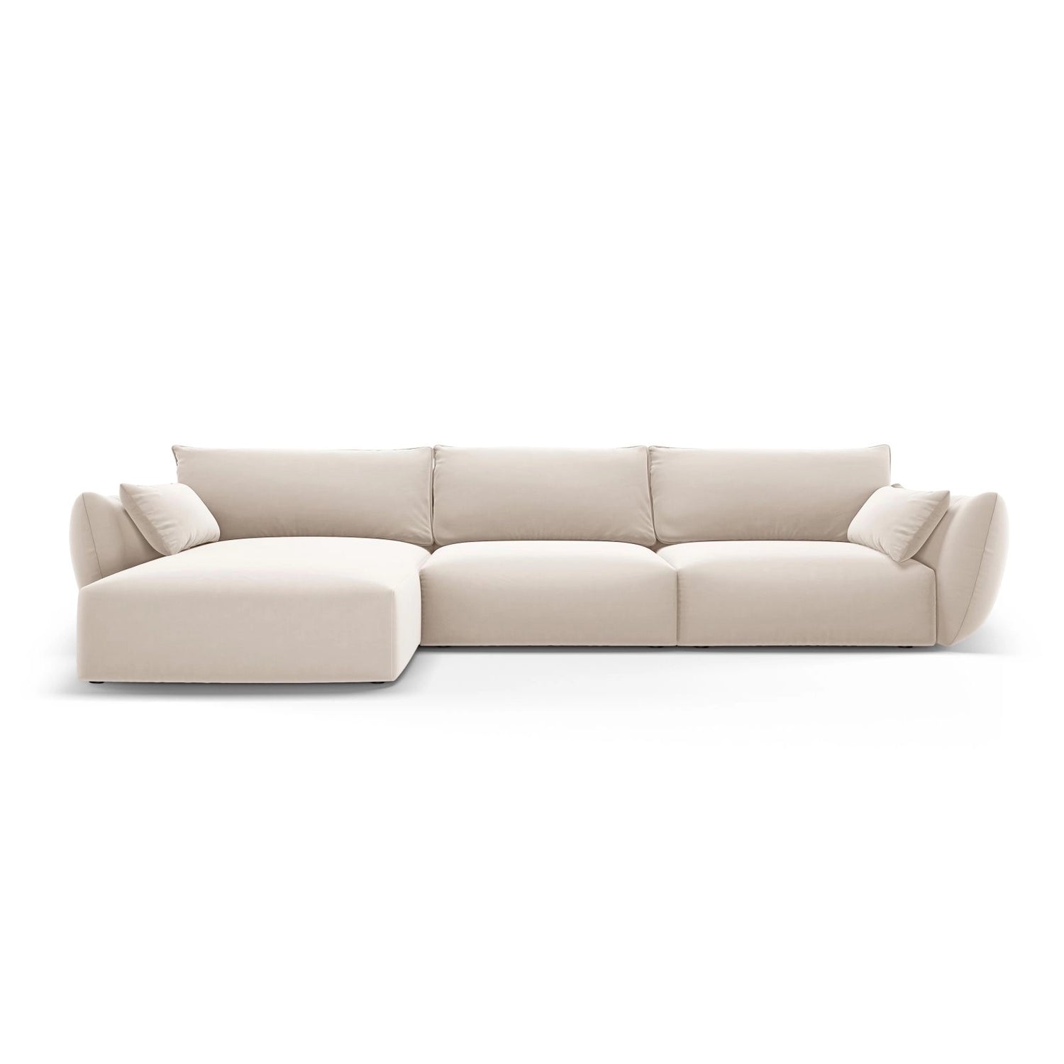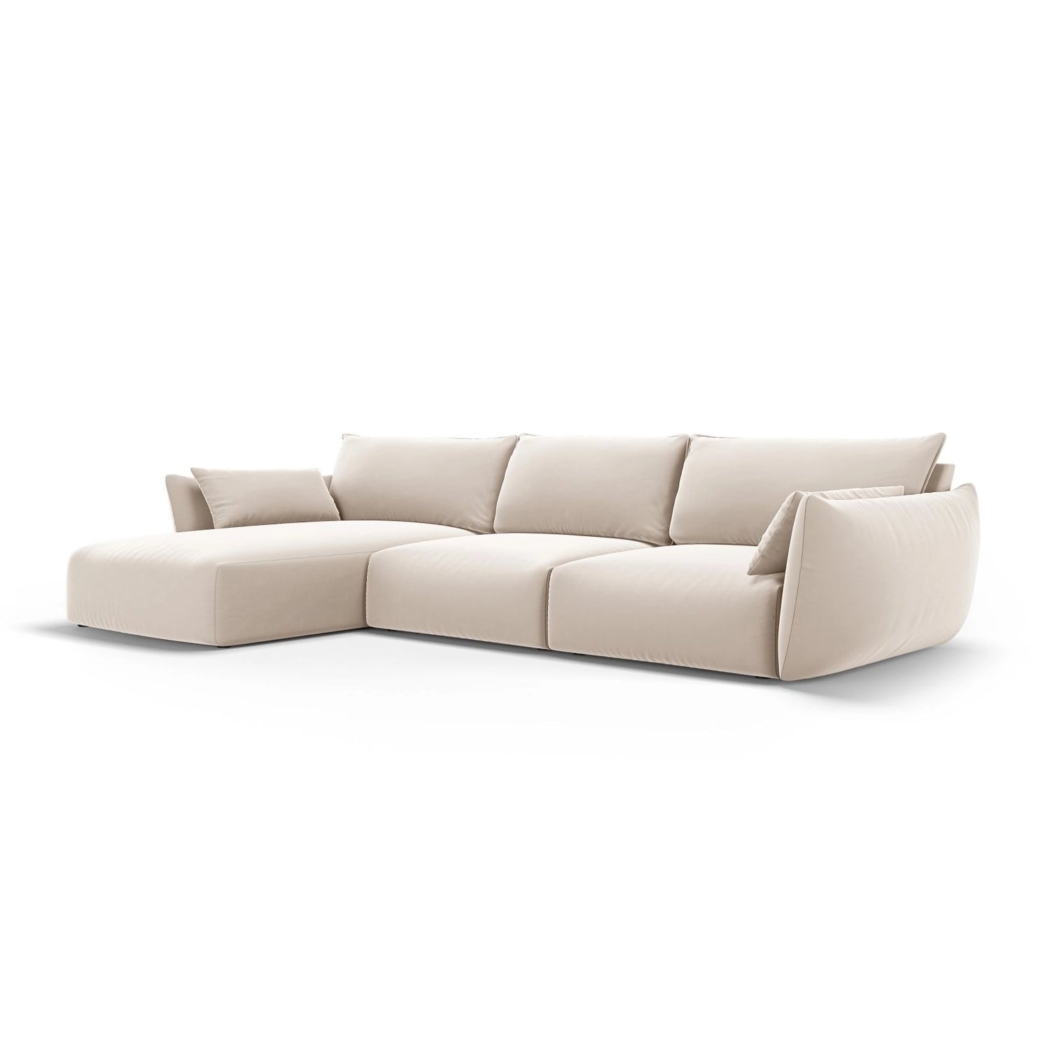 Matera 4-Sitzer Ecksofa, Linke Seite, aus Samt oder Chenille, 308x171x85 cm - Chenille (Haga 23), Hellbeige // Beine Schwarzes Plastik ist auf Lager und wird versandt, sobald es wieder verfügbar ist