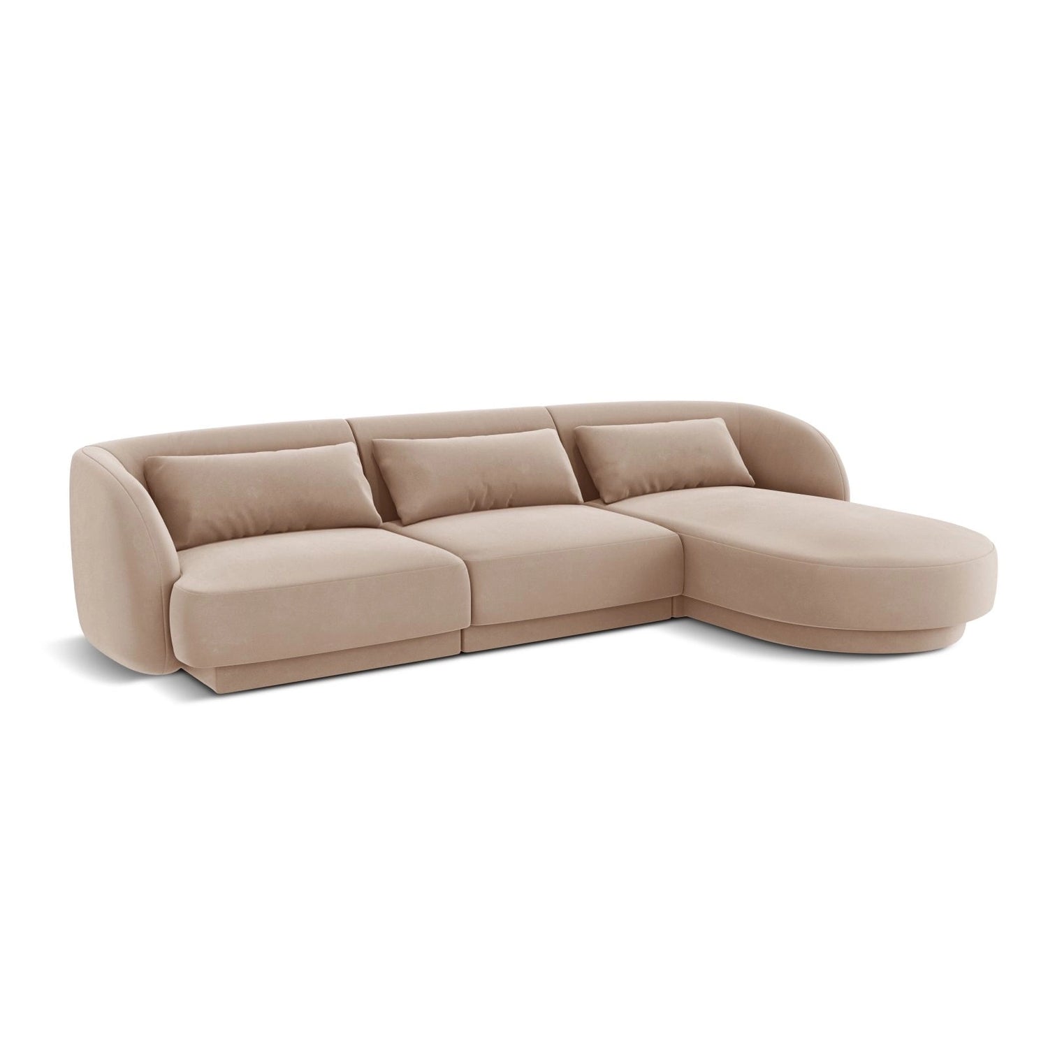 Tulum 4-Sitzer Ecksofa, Rechte Seite, aus Samt oder Chenille, 255x156x70 cm - Chenille (Haga 23), Hellbeige // Beine Schwarzes Plastik ist auf Lager und wird versandt, sobald es wieder verfügbar ist