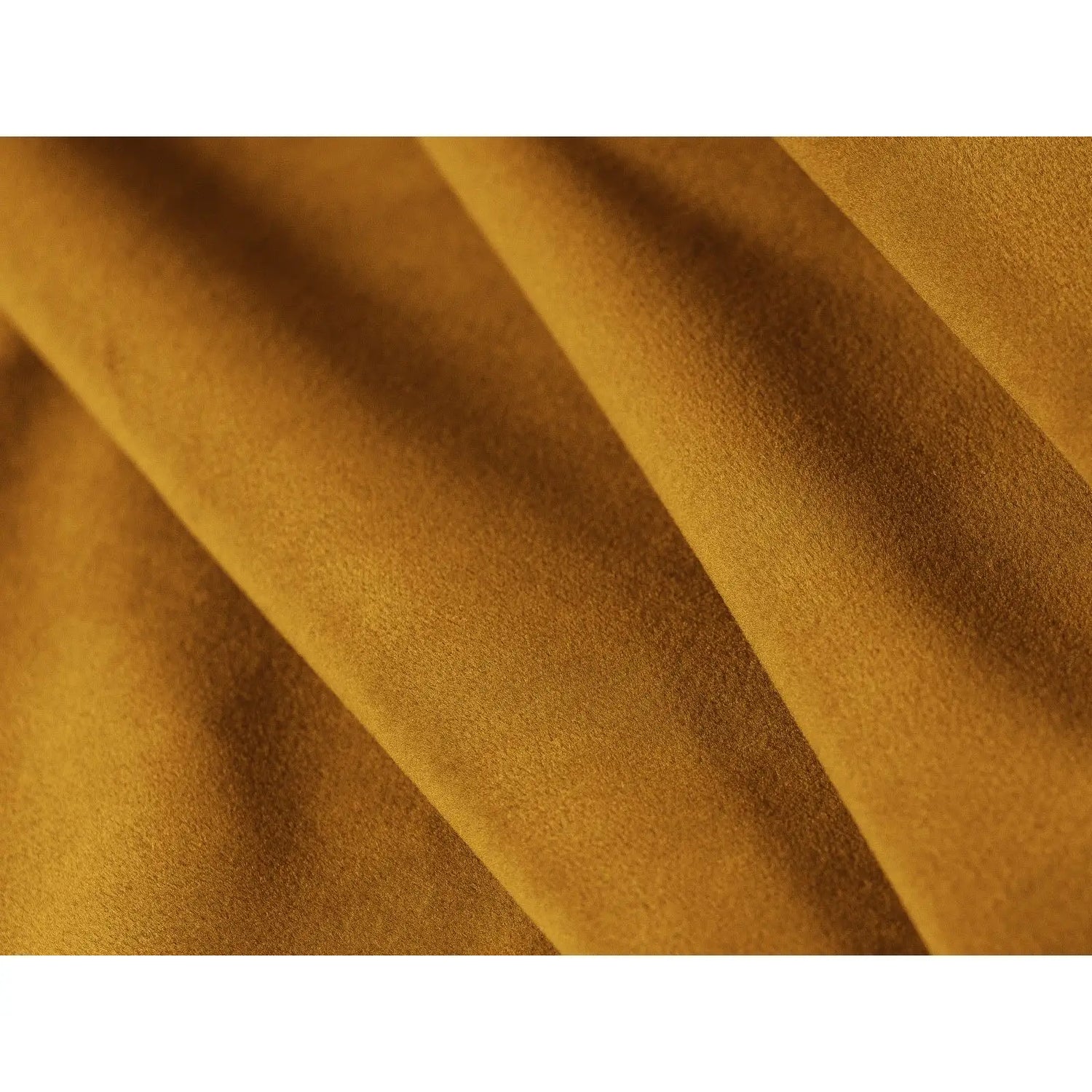 Der Bezug besteht aus einem strapazierfähigen Chenille-Stoff mit samtiger Haptik und einer leicht schimmernden Oberfläche. Die Polsterung kombiniert Polyurethanschaum mit einer Wattierung für angenehmen Sitzkomfort. Das Gestell ist aus massivem Kiefernholz sowie Holzwerkstoffen gefertigt und ruht auf schwarzen Kunststoffbeinen.