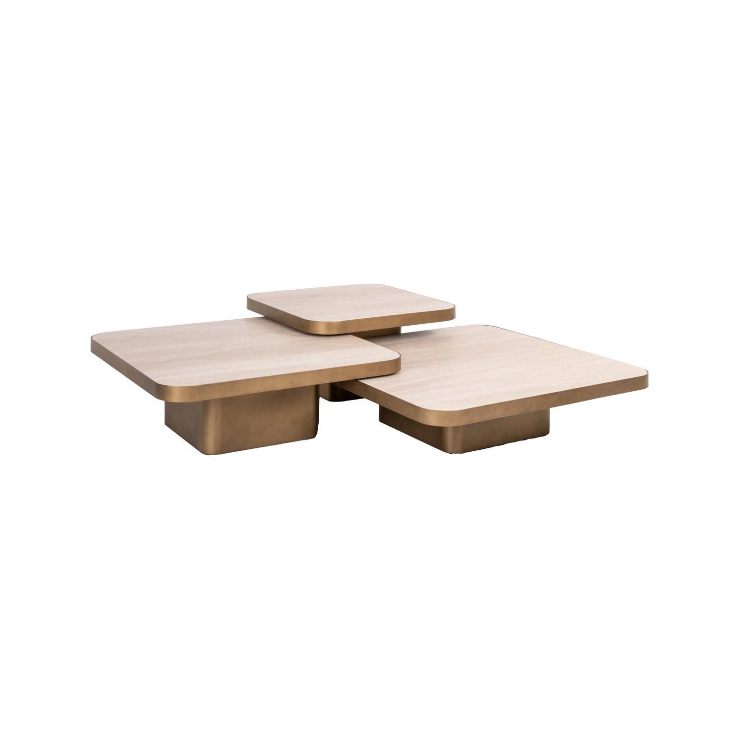 Couchtisch Cumulus in beige mit Glas 3er-Set, 100x100x25 cm