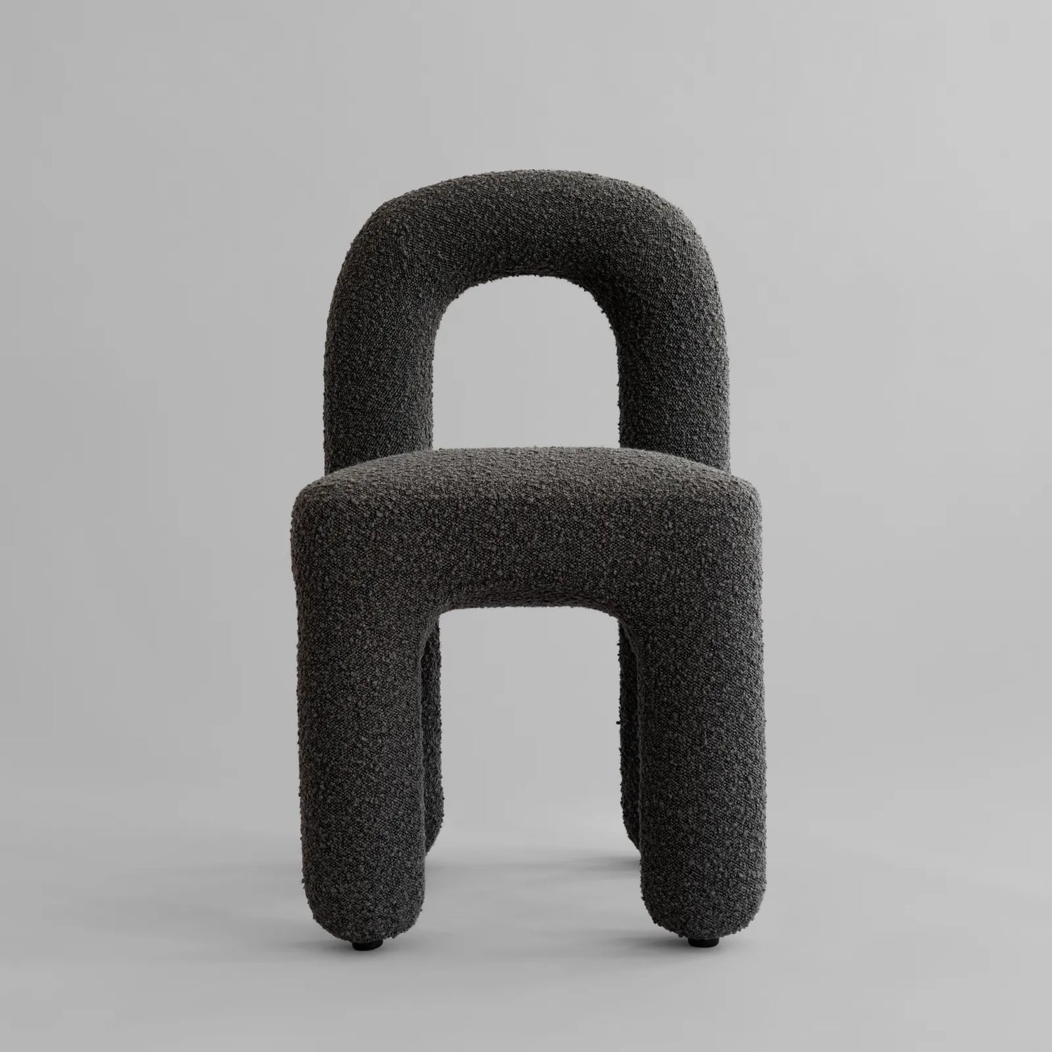 Der Daiku Essstuhl zeichnet sich durch eine klare, kubische Silhouette aus, die von modularen architektonischen Formen inspiriert ist. Das Design betont zwei ineinandergreifende Volumen – Rückenlehne und Sitz – die einerseits als eigenständige Elemente erscheinen, andererseits harmonisch miteinander verbunden sind. Die feine Trennung zwischen Sitzfläche und Rückenlehne erzeugt einen fast schwebenden Effekt, der der skulpturalen Form Leichtigkeit verleiht. Die geometrische Klarheit verleiht dem Essbereich eine zurückhaltend architektonische Präsenz, während die offene, einladende Form Komfort und Geselligkeit beim Essen fördert. Der Stuhl ist mit sorgfältig geschichtetem Schaumstoff und sanft gerundeten Kanten gefertigt, wodurch eine Balance zwischen präziser Konstruktion und angenehmer Haptik entsteht. Minimale sichtbare Nähte unterstreichen den schlanken, minimalistischen Charakter. Der Bezug aus warmem Bouclé-Stoff in Deep Taupe entspricht dem des Lounge-Stuhls und sorgt für ein behagliches Sitzgefühl, das sich in verschiedene Essbereiche einfügt. Entworfen von Kristian Sofus Hansen & Tommy Hyldahl.