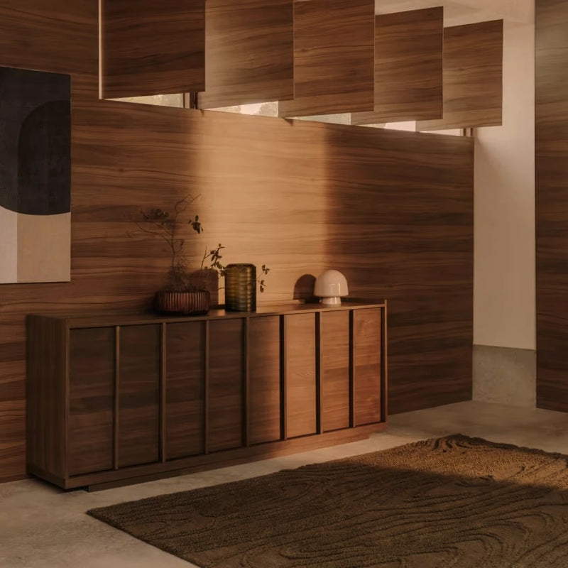 4-türiges Sideboard Uxue aus massivem Akazienholz mit gebleichtem Finish 200 x 88 cm