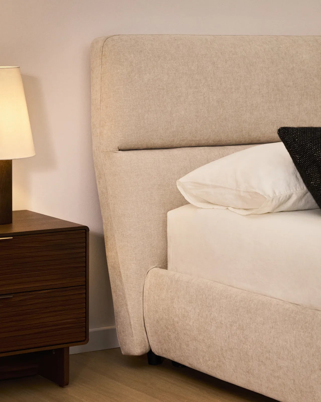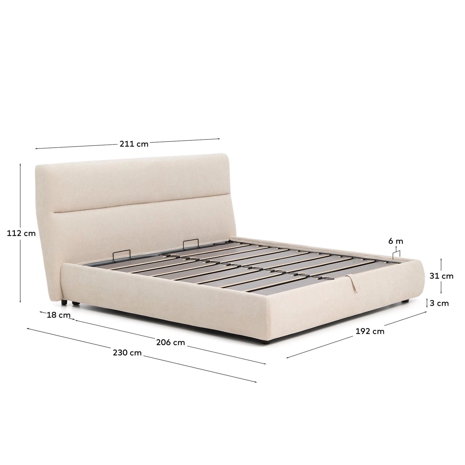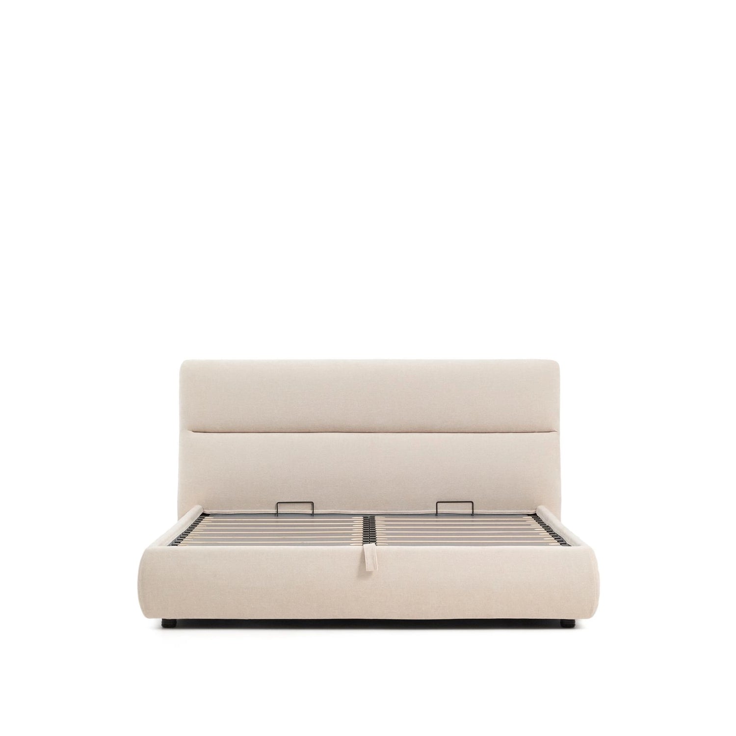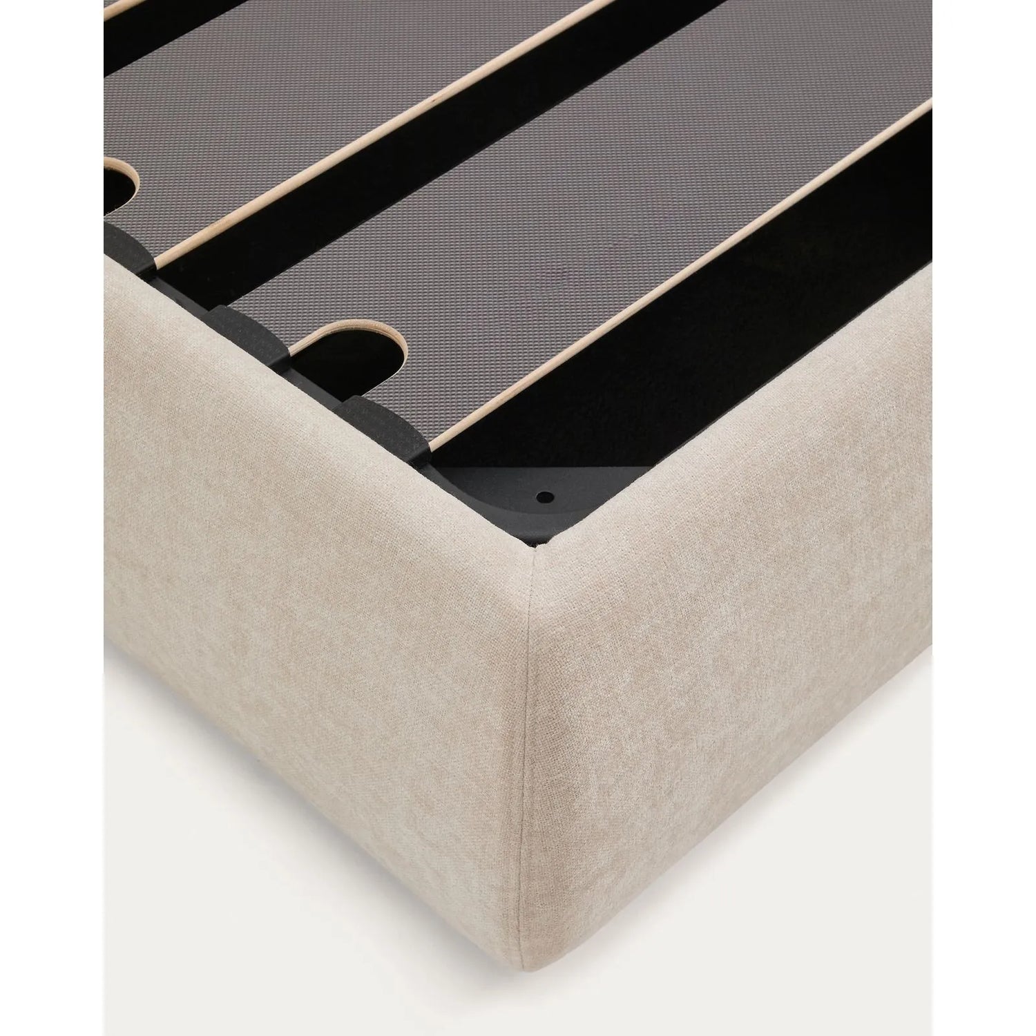 Dieses Bett vereint Komfort und Funktionalität in einem Möbelstück, mit dem Ruhe und Ordnung Einzug ins Schlafzimmer halten. Das schlichte und zeitlose Design unterstreicht die Details: ein vollständig abziehbares, praktisches Gestell, das das Problem der Aufbewahrung löst, ohne zusätzlichen Platz zu beanspruchen. Der Bezug aus kleinstrukturierter Chenille fühlt sich angenehm samtig an und überzeugt durch hohe Lichtbeständigkeit und Strapazierfähigkeit im Alltag. Sowohl das Kopfteil als auch der Rahmen sind vollständig abziehbar. Die Bezüge können in der Maschine im Schonwaschgang gewaschen werden. Der Stoff ist gemäß OEKO-TEX® STANDARD 100 zertifiziert, was eine sichere und umweltverträgliche Herstellung gewährleistet. Der Bettkasten ist mit zwei 900N-Gasdruckfedern ausgestattet, die das Öffnen erleichtern und einfachen Zugang zum Stauraum ermöglichen. Der Lattenrost besteht aus Latten aus gedämpftem Pappelholz (180 mm), die mit Kunststoffteilen verstärkt sind, um die Geräuschentwicklung während des Gebrauchs zu reduzieren. Das pulverbeschichtete, 1,1 mm dicke Stahlgestell sorgt für Festigkeit und Stabilität. Jedes Detail wurde sorgfältig durchdacht, um ein Bett zu schaffen, das Design und Funktionalität in einem Produkt vereint.