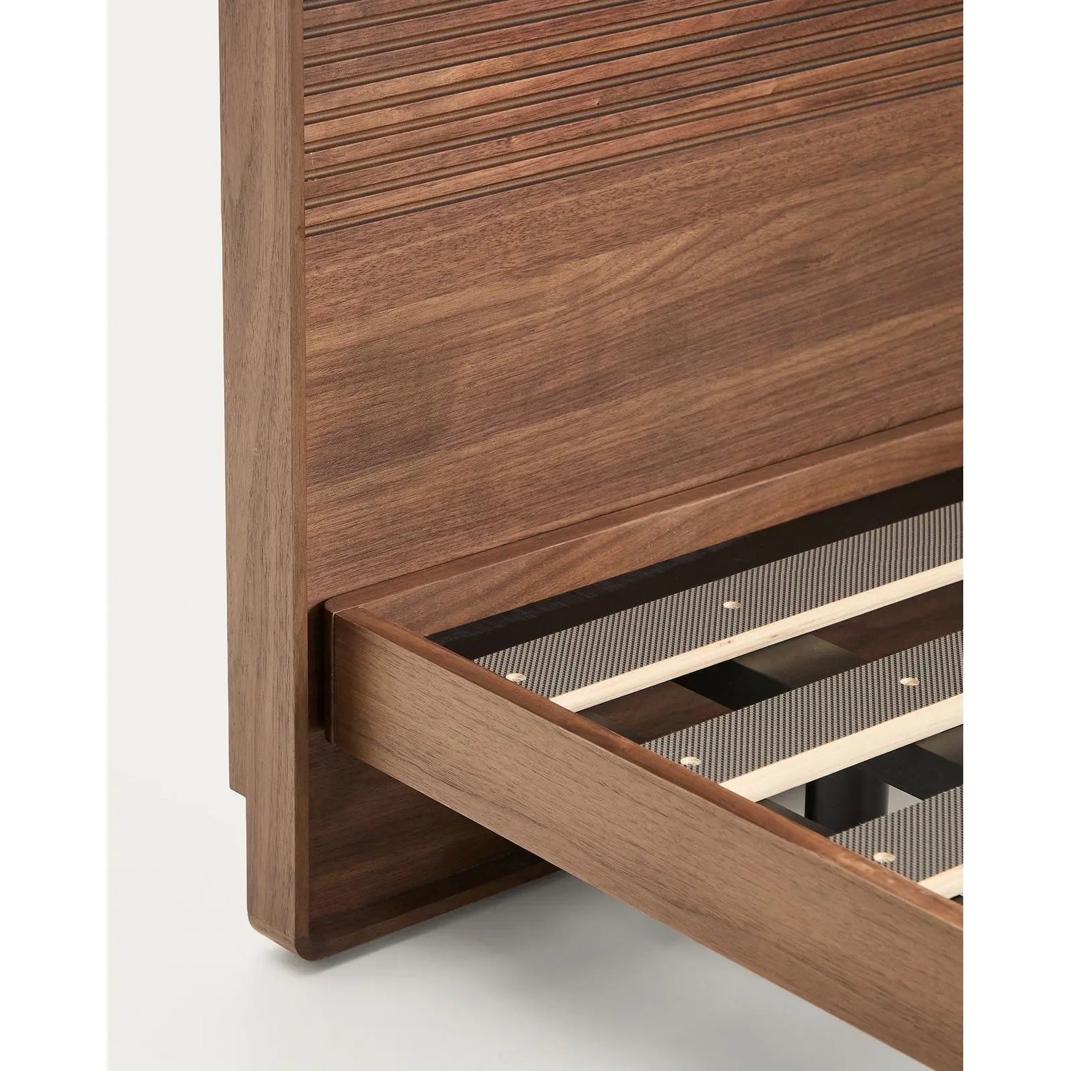 Bett Norlen aus Nussbaumfurnier mit dunklem Finish und LED-Licht für Matratzen 180 x 200 cm FSC Mix Credit