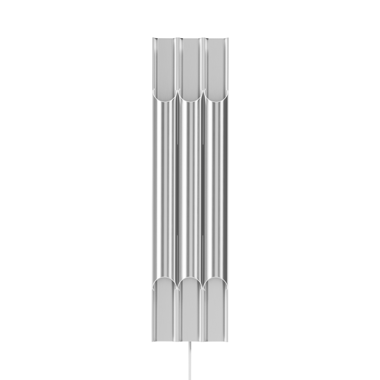 PAN Wall 50 III strahlt nach oben gerichtetes Umgebungslicht aus, das die freiliegende Aluminiumoberfläche beleuchtet und dabei ein schönes Lichtmuster an der Wand hinterlässt, kombiniert mit einem gemütlichen nach unten gerichteten Licht.