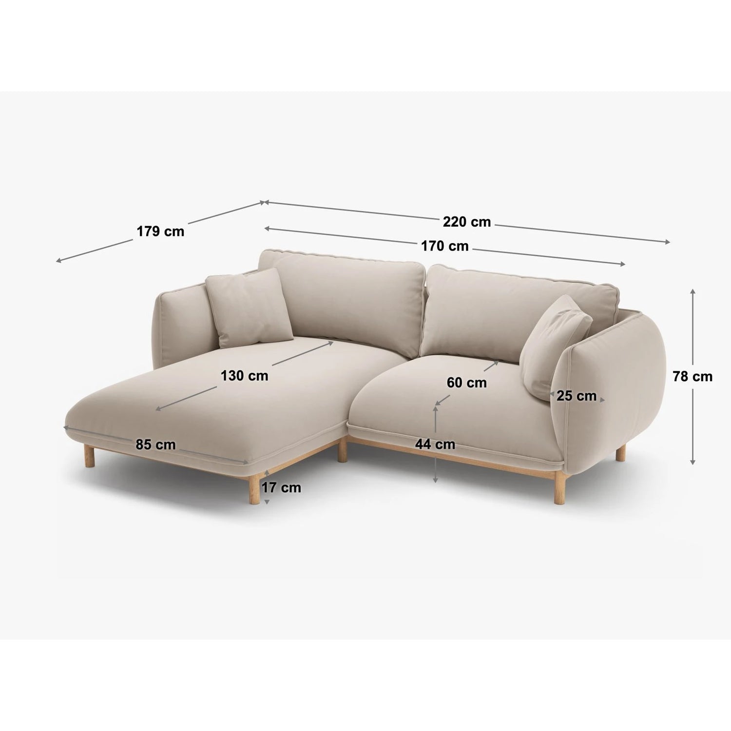 Ada Ecksofa Links aus Samt (Casino Lion) in Sand, 220x179 cm