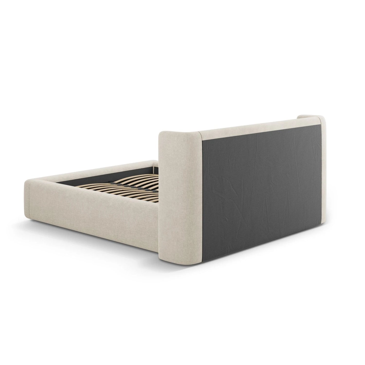 Jolene Bett mit Kopfteil und Stauraum, aus Strukturierter Stoff (Wind 02) in Elfenbein, 200x200 cm