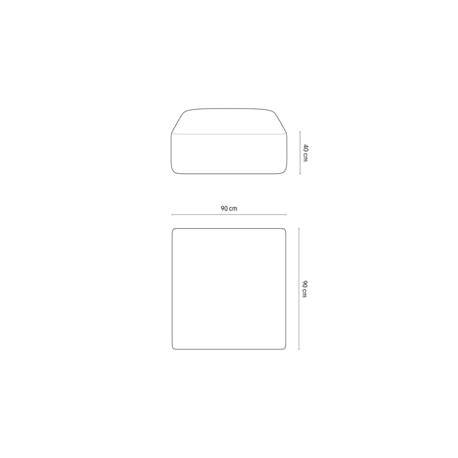 90cm x 90cm x 40cm (Länge x Breite x Höhe)