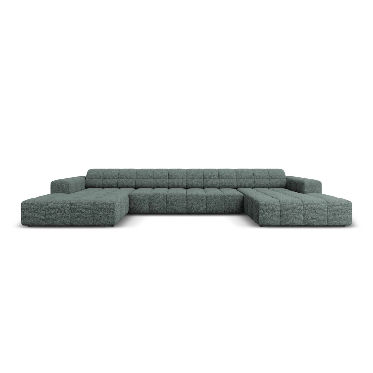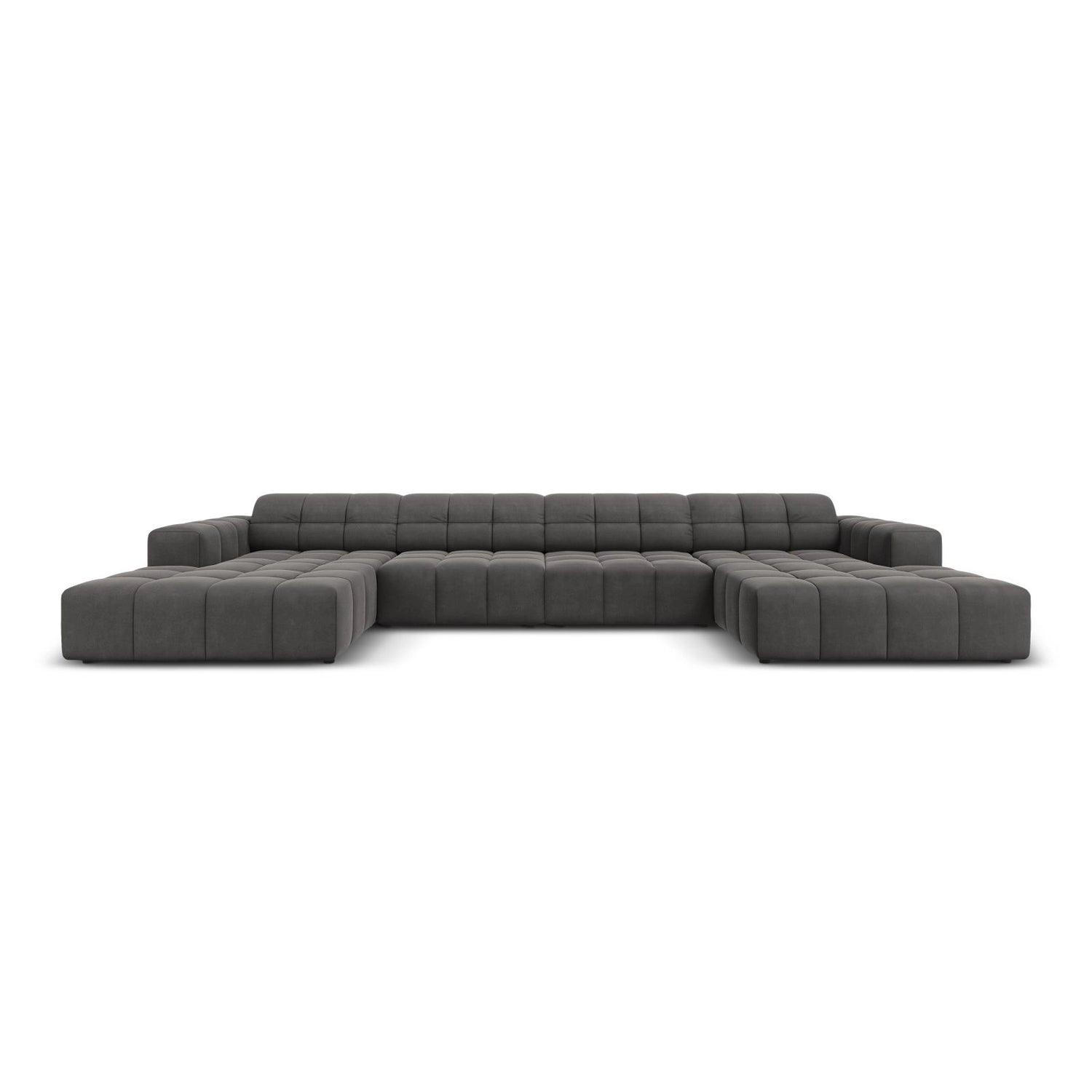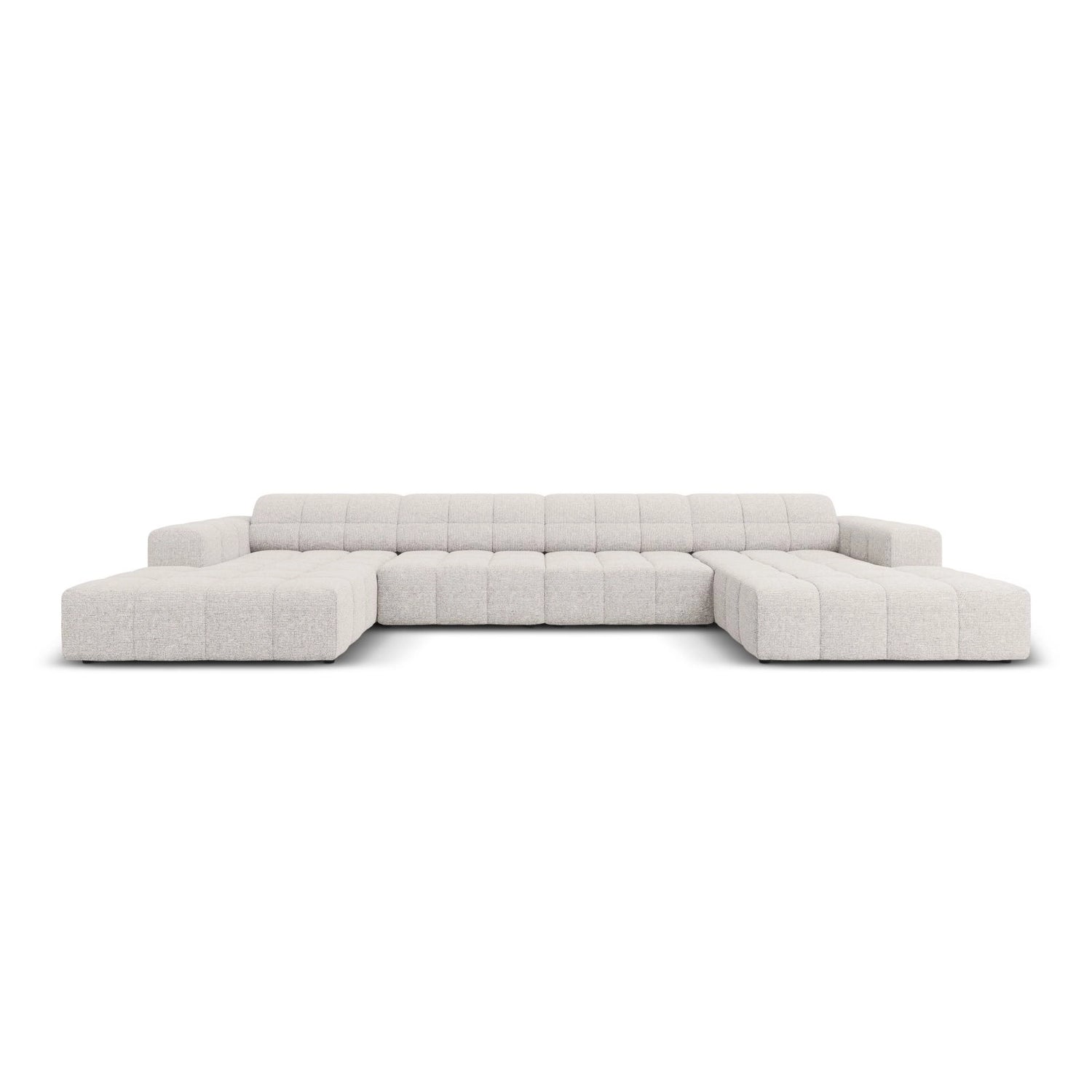 Chicago 6-Sitzer Panorama Sofa aus Samt oder Chenille, 364x166x70 cm - Chenille (Haga 23), Hellbeige // Beine Schwarzes Plastik ist auf Lager und wird versandt, sobald es wieder verfügbar ist