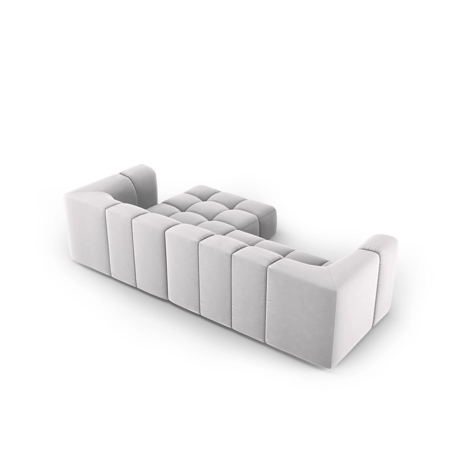Das Sofa eignet sich für moderne Wohnräume und bietet mit seiner modularen Bauweise Flexibilität. Die rechteckige Form mit einer Länge von 256 cm, einer Tiefe von 160 cm und einer Höhe von 70 cm ermöglicht eine großzügige Sitzfläche für drei Personen. Die Sitztiefe beträgt 64 cm, die Sitzhöhe 38 cm, die Rückenlehnenhöhe 34 cm und die Armlehnen sind 23 cm breit und 70 cm hoch. Die Meridienne misst 90 cm in der Breite und 128 cm in der Tiefe. Das Sofa ist für eine maximale Belastung von 240 kg ausgelegt.