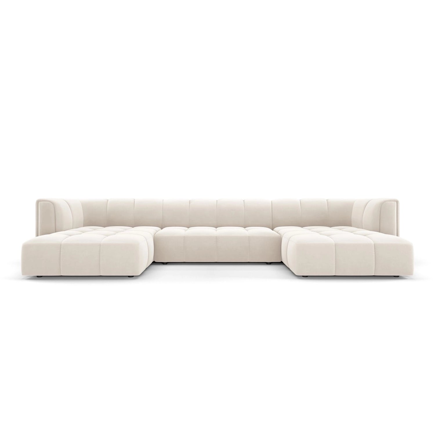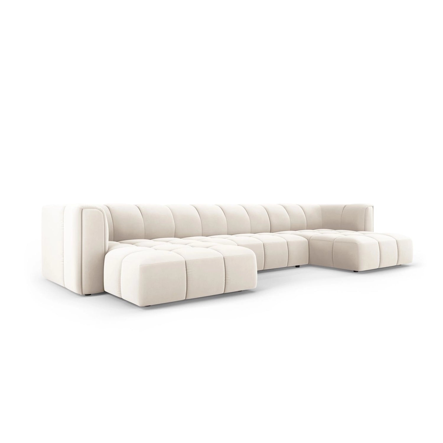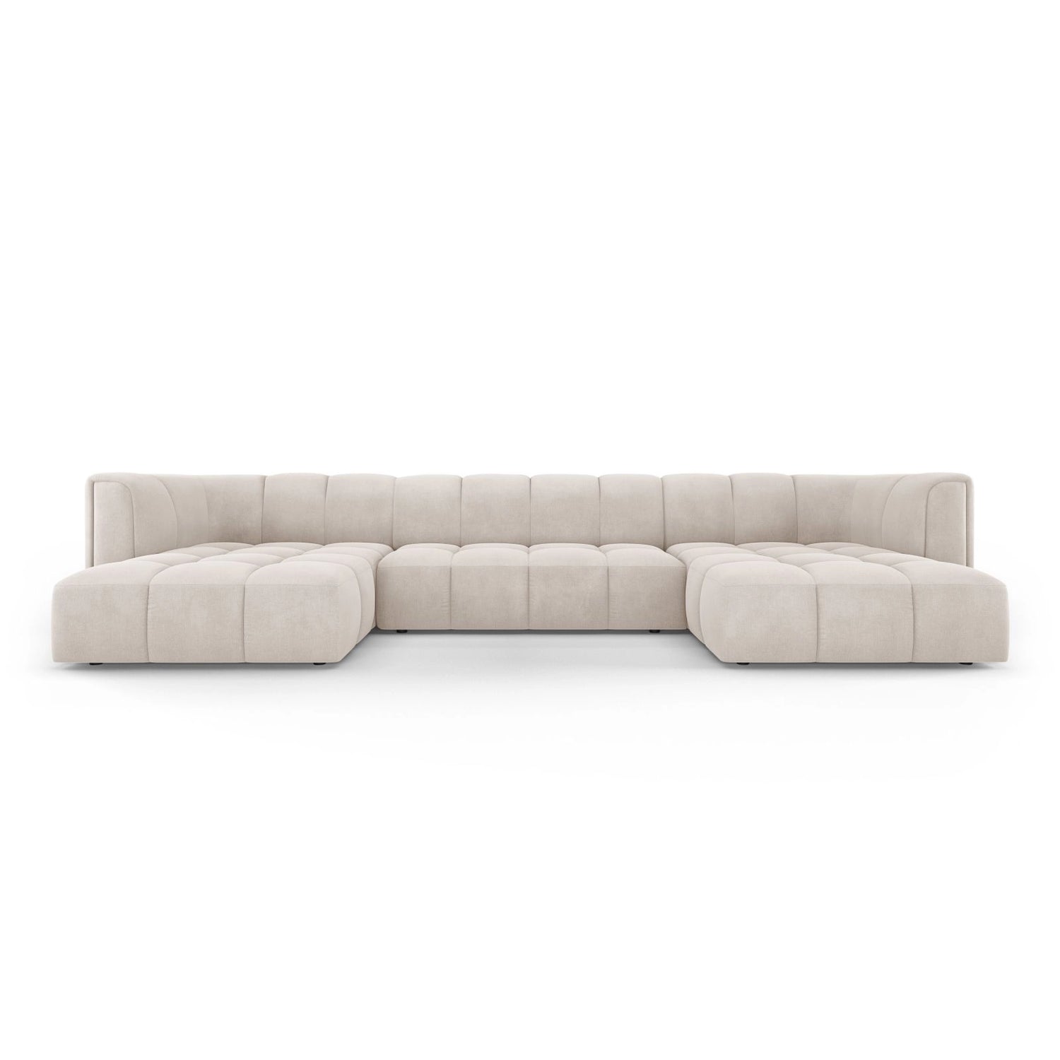 Moritz 5-Sitzer Panorama Sofa aus Samt oder Chenille, 346x160x70 cm - Chenille (Rebel 25), Beige // Beine Schwarzes Plastik ist auf Lager und wird versandt, sobald es wieder verfügbar ist
