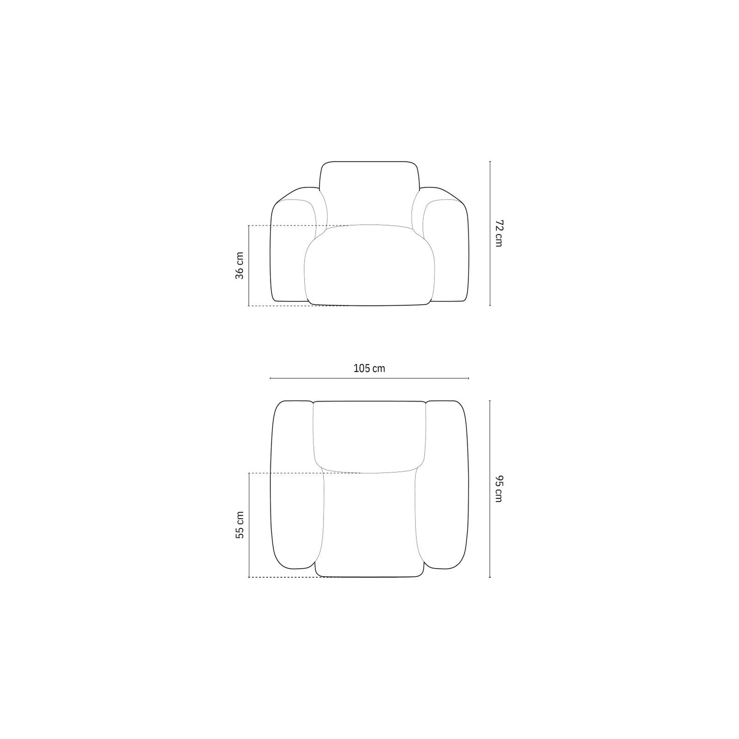 105cm x 95cm x 72cm (Länge x Breite x Höhe)