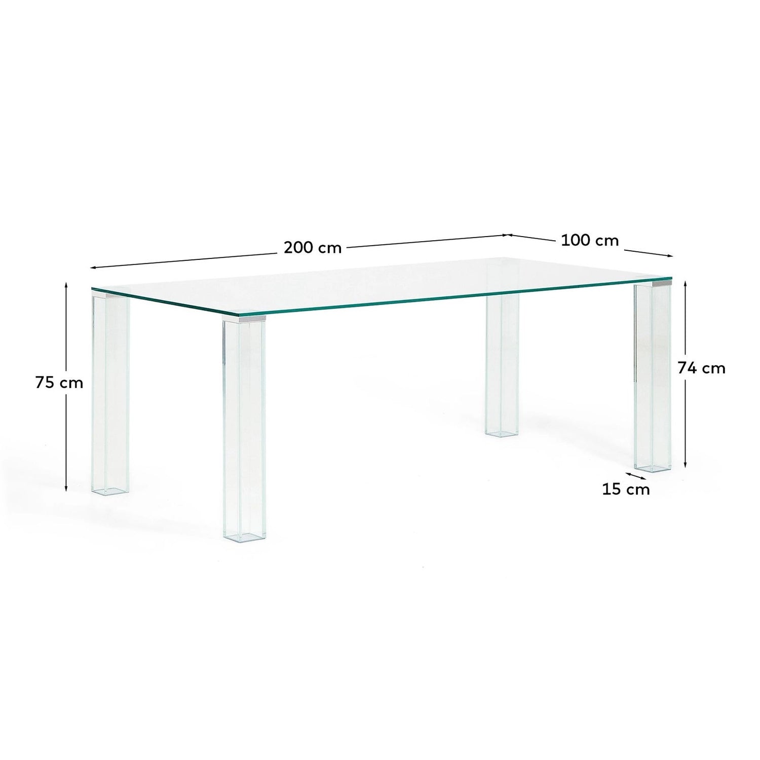 Tisch Adularia aus durchsichtigem Einscheiben-Sicherheitsglas, 200 x 100 cm