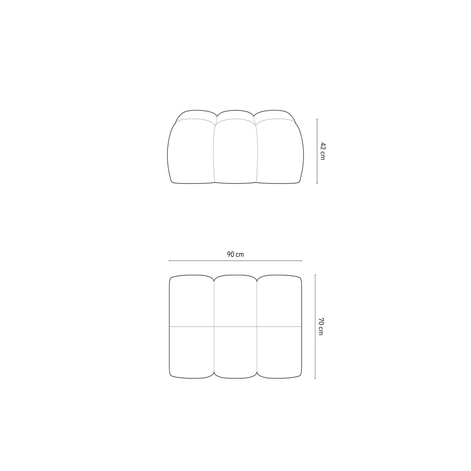90cm x 70cm x 42cm (Länge x Breite x Höhe)