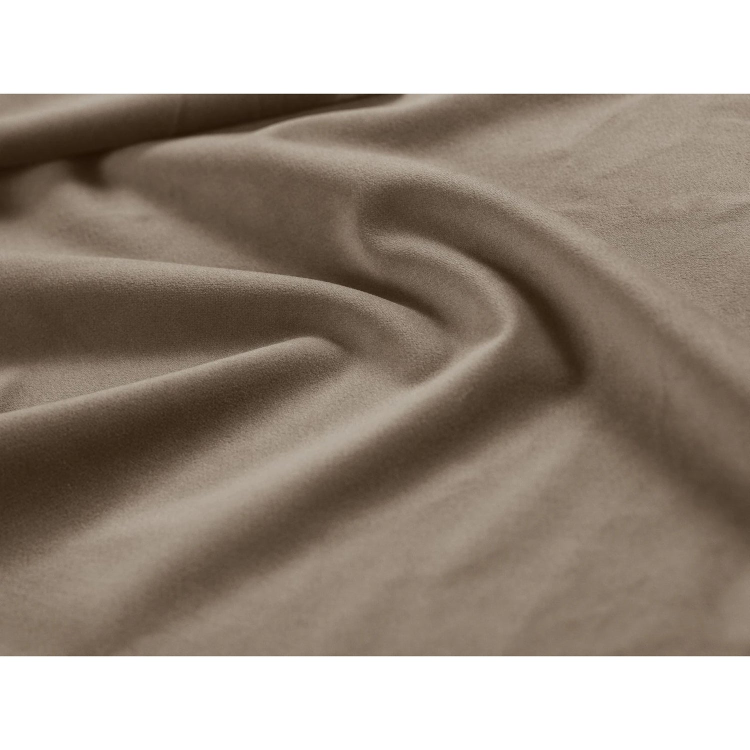 Der Bezug besteht aus hochwertigem Chenille mit einer 3D-Oberfläche, die an einen dichten Leinenstoff erinnert. Das Material zeichnet sich durch seine weiche, fast seidige Haptik sowie eine hohe Strapazierfähigkeit mit 45.000 Martindale aus. Die vier schwarzen Kunststofffüße sorgen für Stabilität und eine dezente Optik.