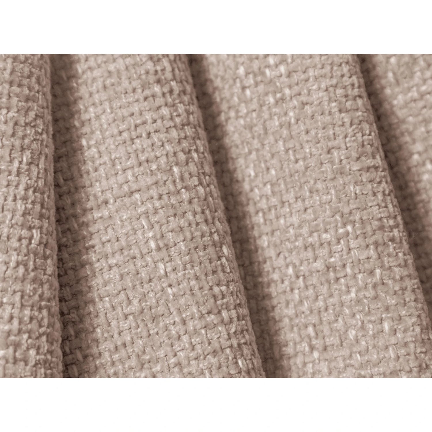 Der Bezug besteht aus hochwertigem Chenille-Stoff in Hellbeige (Haga 23), der durch seine samtige Oberfläche und die leicht irisierende Struktur besticht. Die Polsterung kombiniert Polyurethanschaum mit einer Wattierung für angenehme Sitz- und Rückenlehnenkomfort. Die stabile Konstruktion aus massivem Kiefernholz, Spanplatten und Sperrholz wird durch integrierte Federn unterstützt. Die Beine sind aus schwarzem Kunststoff gefertigt und haben eine Höhe von 2 cm.