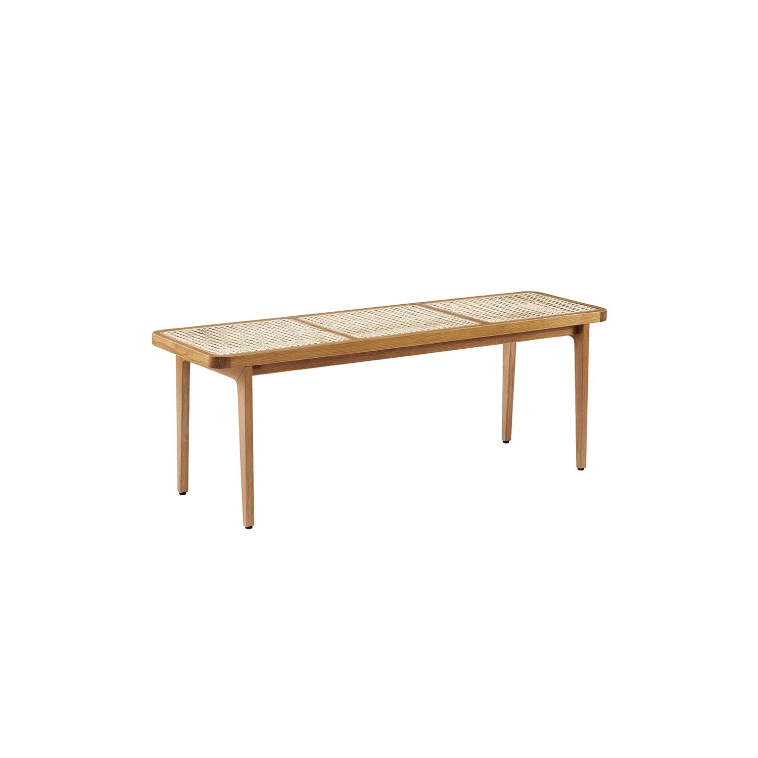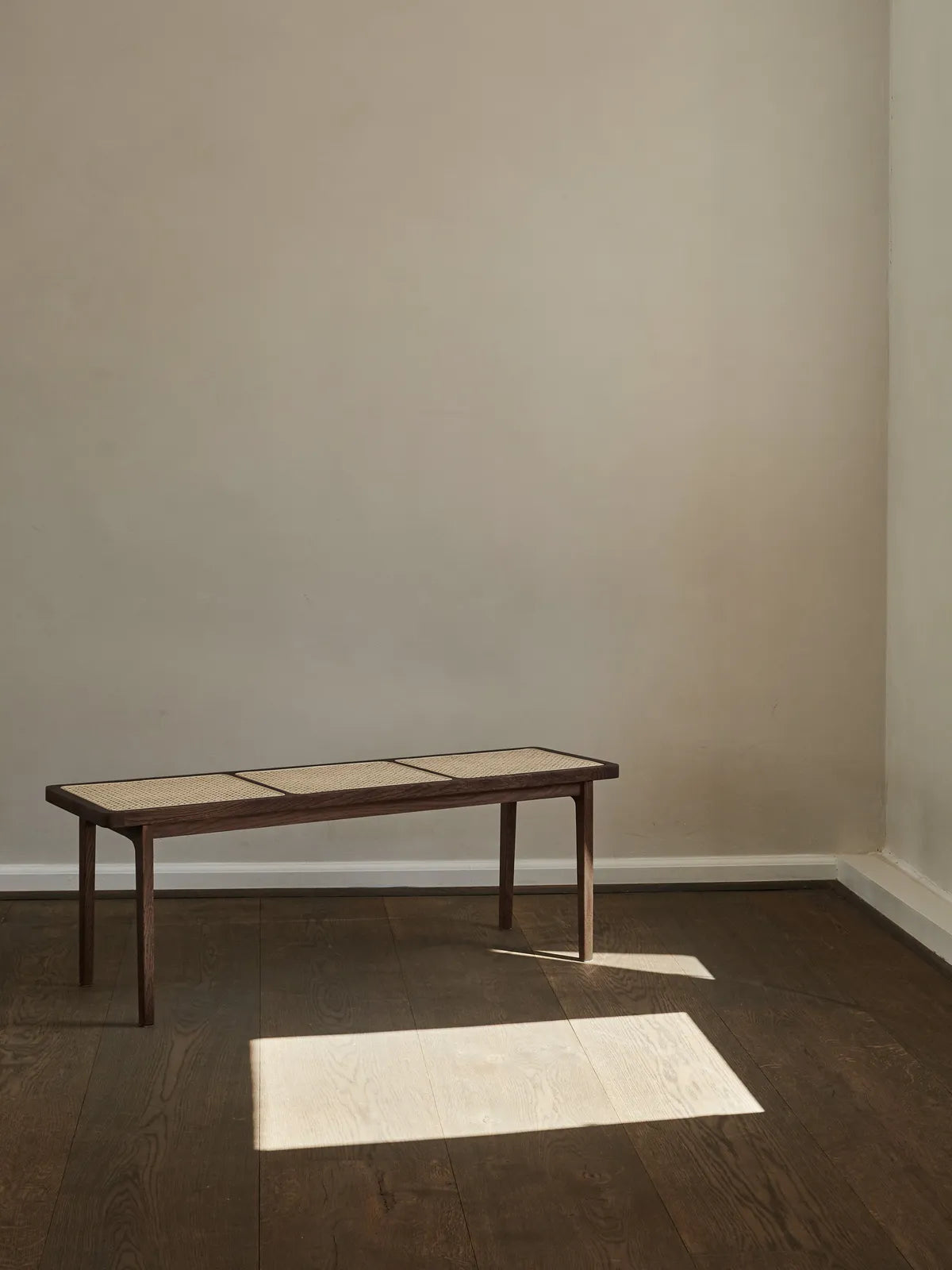 Sitzbank Le Roi aus Massivholz Esche und Rattan in Dark Smoked, 120×35×42 cm