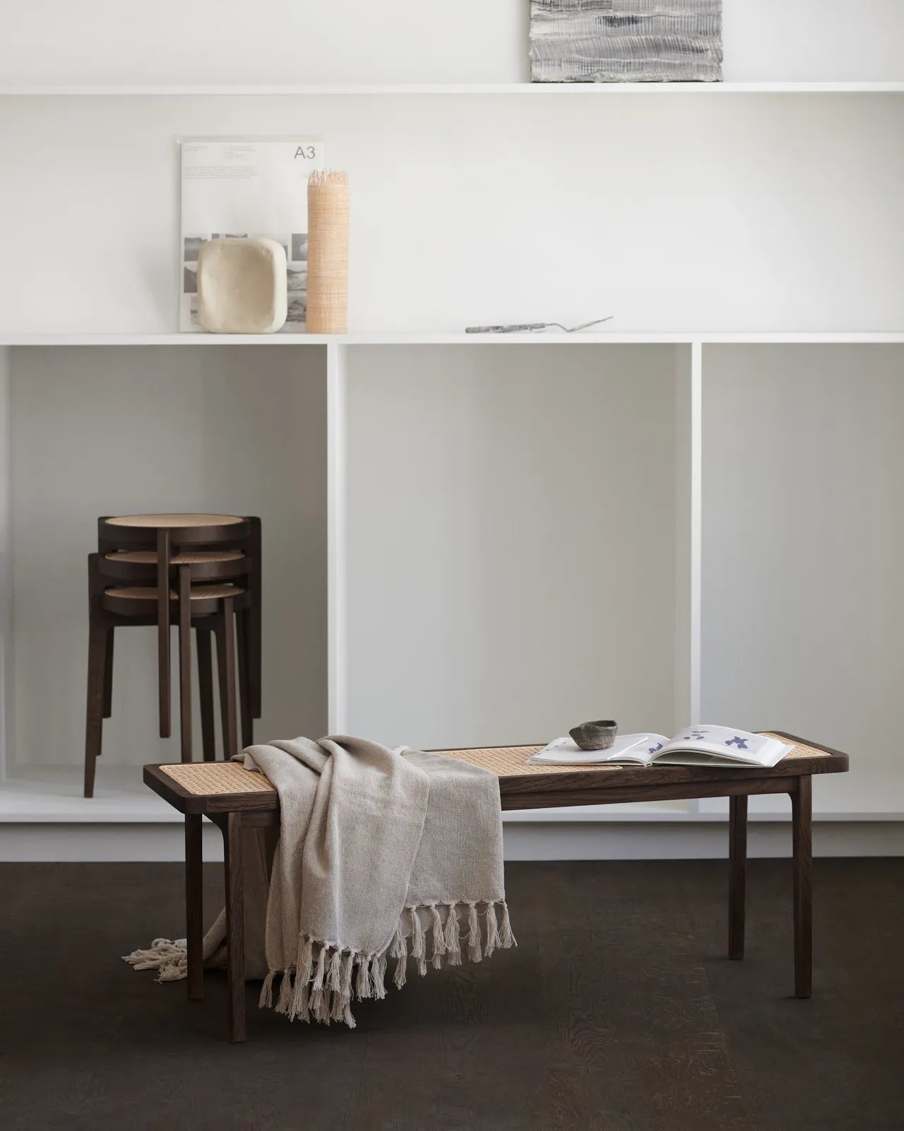 Kollektion: LeRoi Designer: Kristian Sofus Hansen und Tommy Hyldahl Material: FSC-zertifizierte braune Esche Materialbeschreibung: Aus massiver Esche mit eingelegtem natürlichem französischen Rattan. Erhältlich in natur und dunkel geräuchert. Farbe Rahmen: Dunkel geräuchert Fakten: Zeitlos und funktional Konstruktion aus Massivholz mit eingelegtem französischem Rattan Trägt bis zu 200 kg Dient gleichermaßen gut als Bank oder Tisch Hergestellt in Polen Maße (cm): Breite: 120 cm, Höhe: 42 cm, Tiefe: 35 cm Gewicht (kg): 5