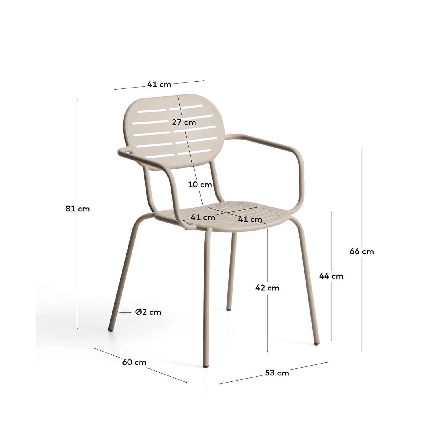Outdoor-Stuhl Brai mit Armlehnen aus taupefarben verzinktem Stahl