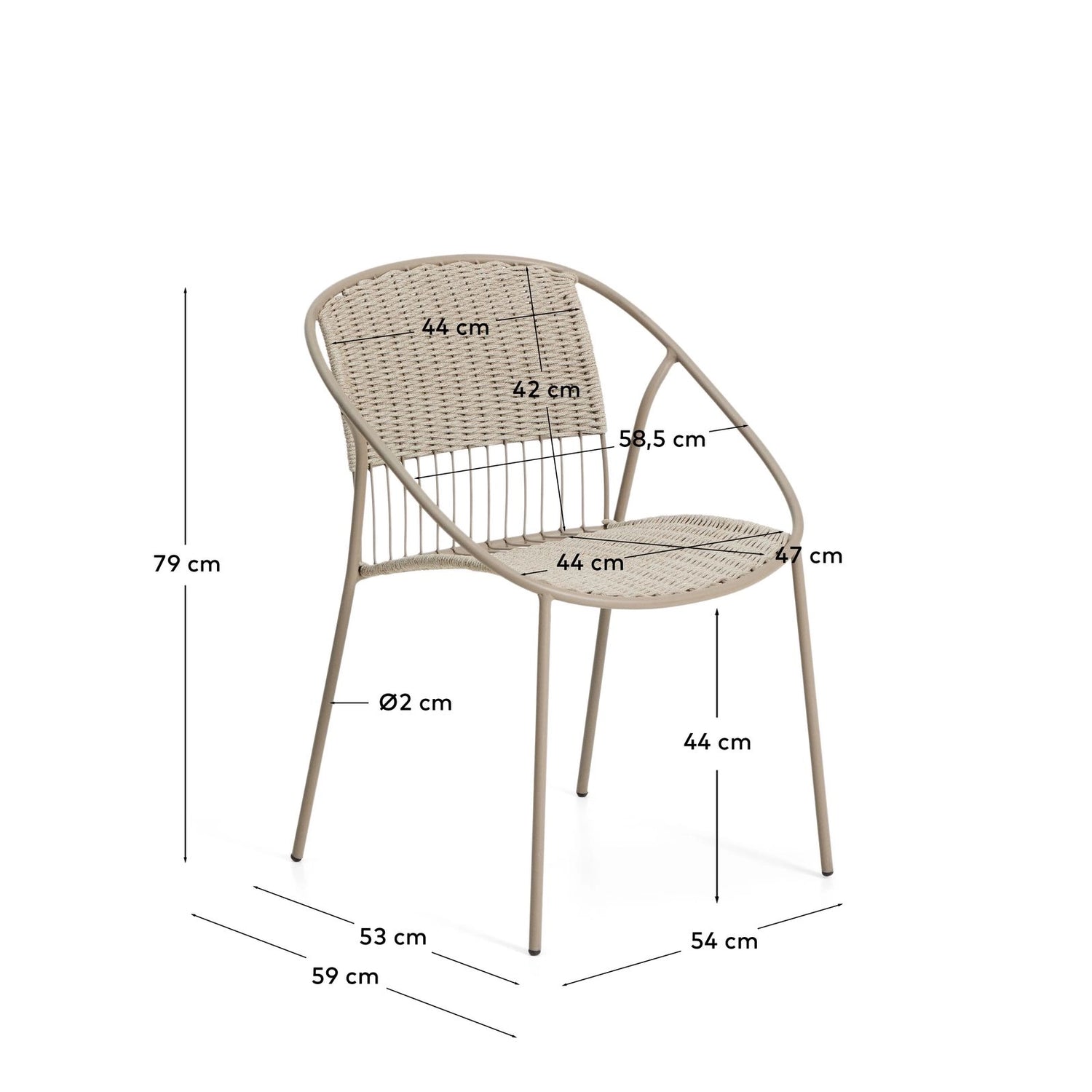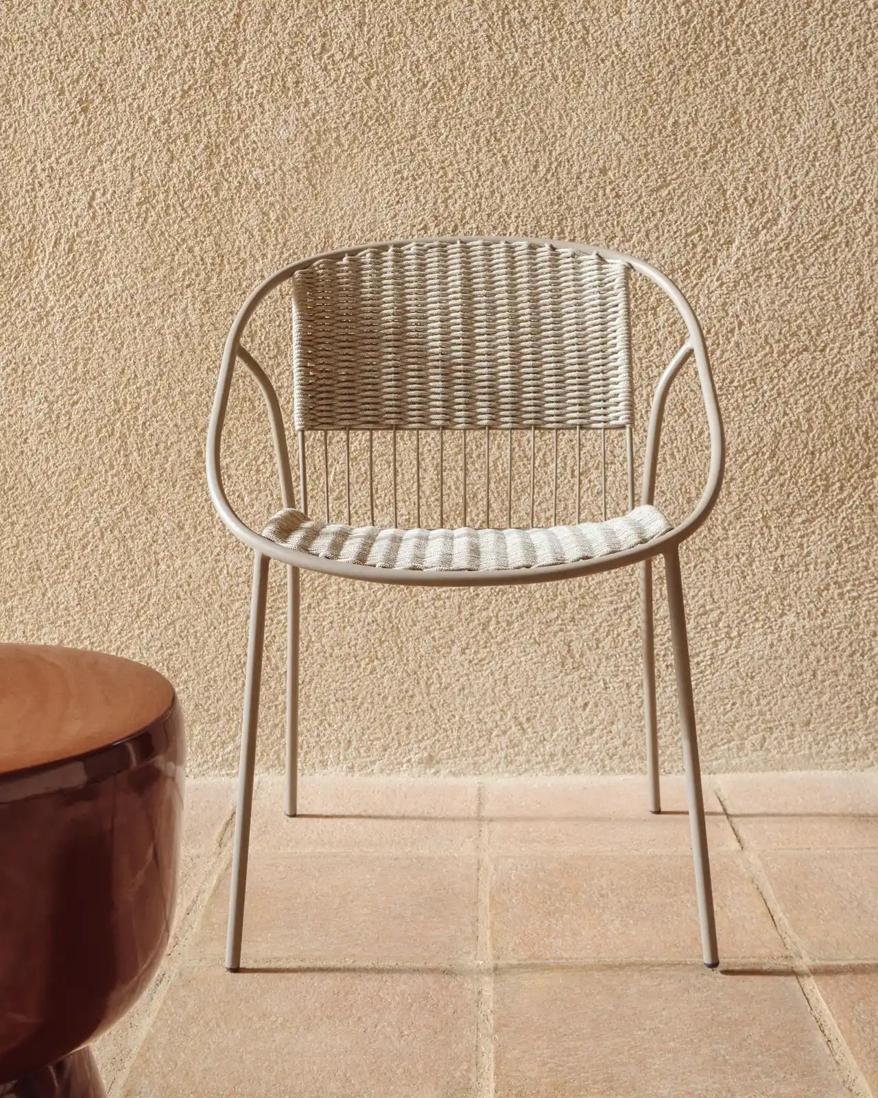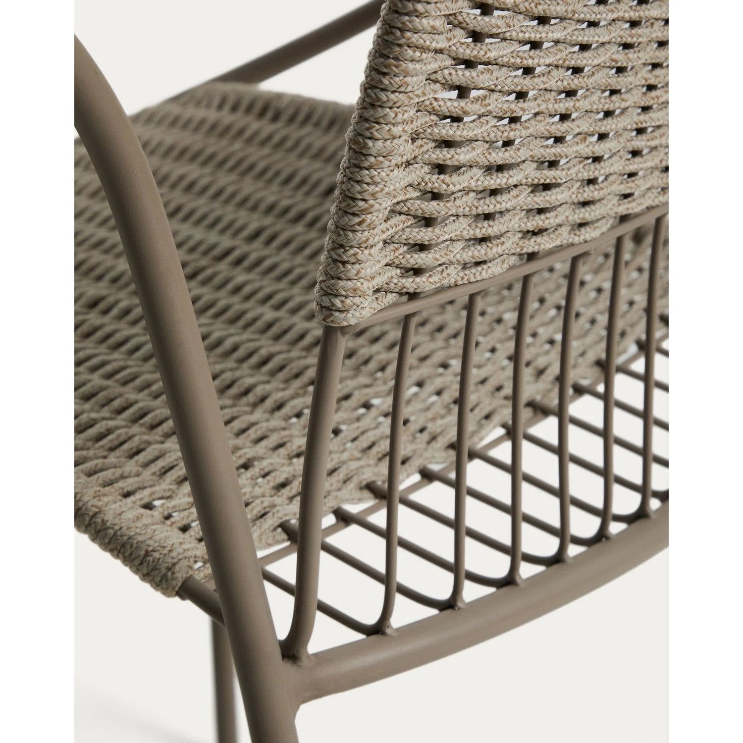 Stapelbarer Stuhl Atrani aus verzinktem Stahl und taupefarbenem Seil