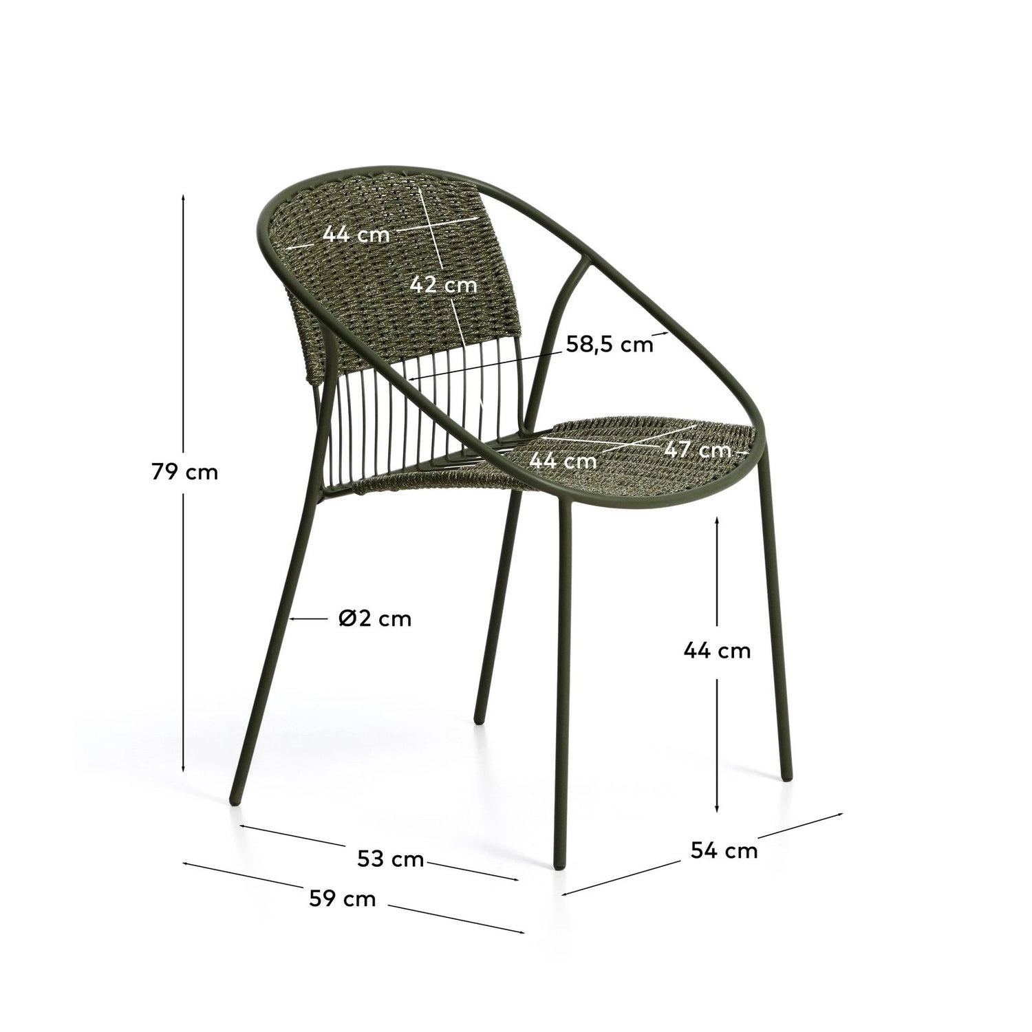 Der Stuhl Atrani vereint Leichtigkeit und Widerstandsfähigkeit in einem Design, das Sie ganz entspannt die Bewegung genießen lässt. Sitz und Rückenlehne sind mit UV-beständigem Seil handgeflochten, sodass sie auch im Freien durch Komfort und Haltbarkeit überzeugen. Das Gestell aus verzinktem Stahl zeichnet sich durch Stabilität sowie hohe Rost- und Korrosionsbeständigkeit aus, was eine längere Lebensdauer garantiert als bei gewöhnlichem Stahl. Darüber hinaus ermöglicht das stapelbare Design eine optimale Platznutzung, wenn der Stuhl gerade nicht in Gebrauch ist.