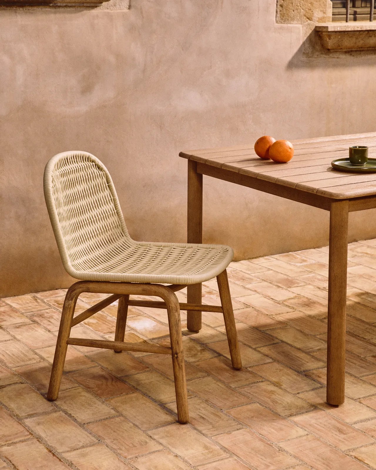 Stuhl Alipa aus massivem Akazienholz und ecrufarbenem Seil, FSC 100 %