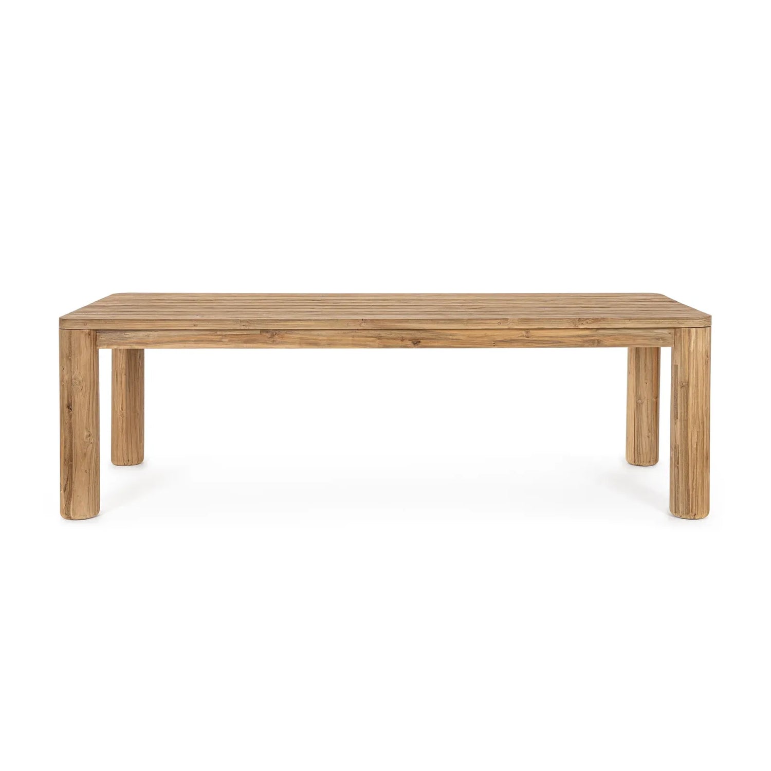 Tischplatte und Beine aus recyceltem Teak-Holz -SVLK (zertifiziertes Holz aus nachhaltiger Wälder). Natürliche gebürstete Feinbearbeitung. Schrauben aus Edelstahl. Das Produkt aus recyceltem Holz zeichnet sich durch das Vorhandensein von Holzdübeln verschiedener Arten und Farben aus. Eventuelle Risse oder Mängel, die im Laufe der Zeit entstehen können, sind Merkmale dieses Materials und machen jedes Stück einzigartig und originell. Beine zu montieren.