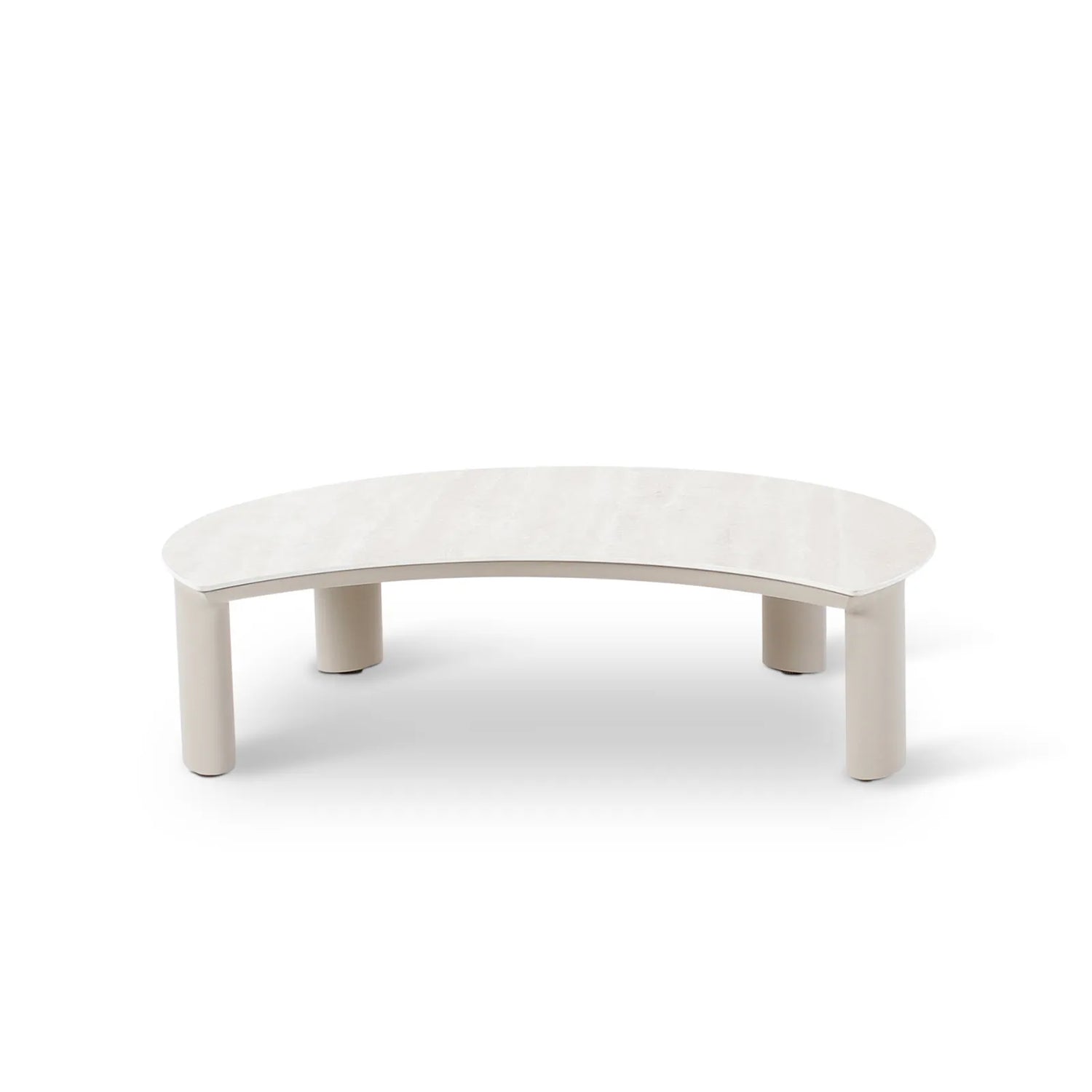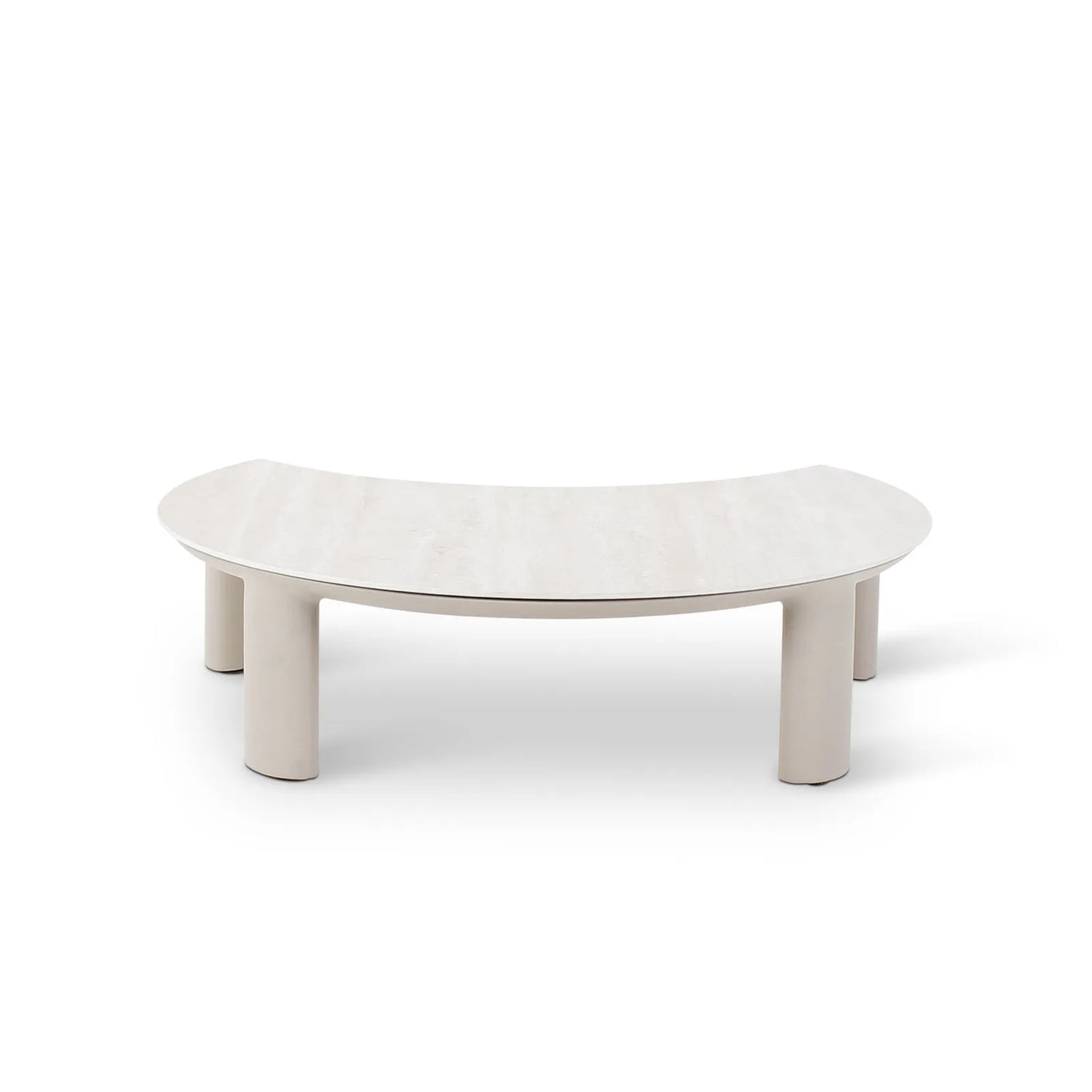 Gartencouchtisch Nimbo aus Aluminium und gesinterten Travertinstein in weiß, 90x72x24 cm