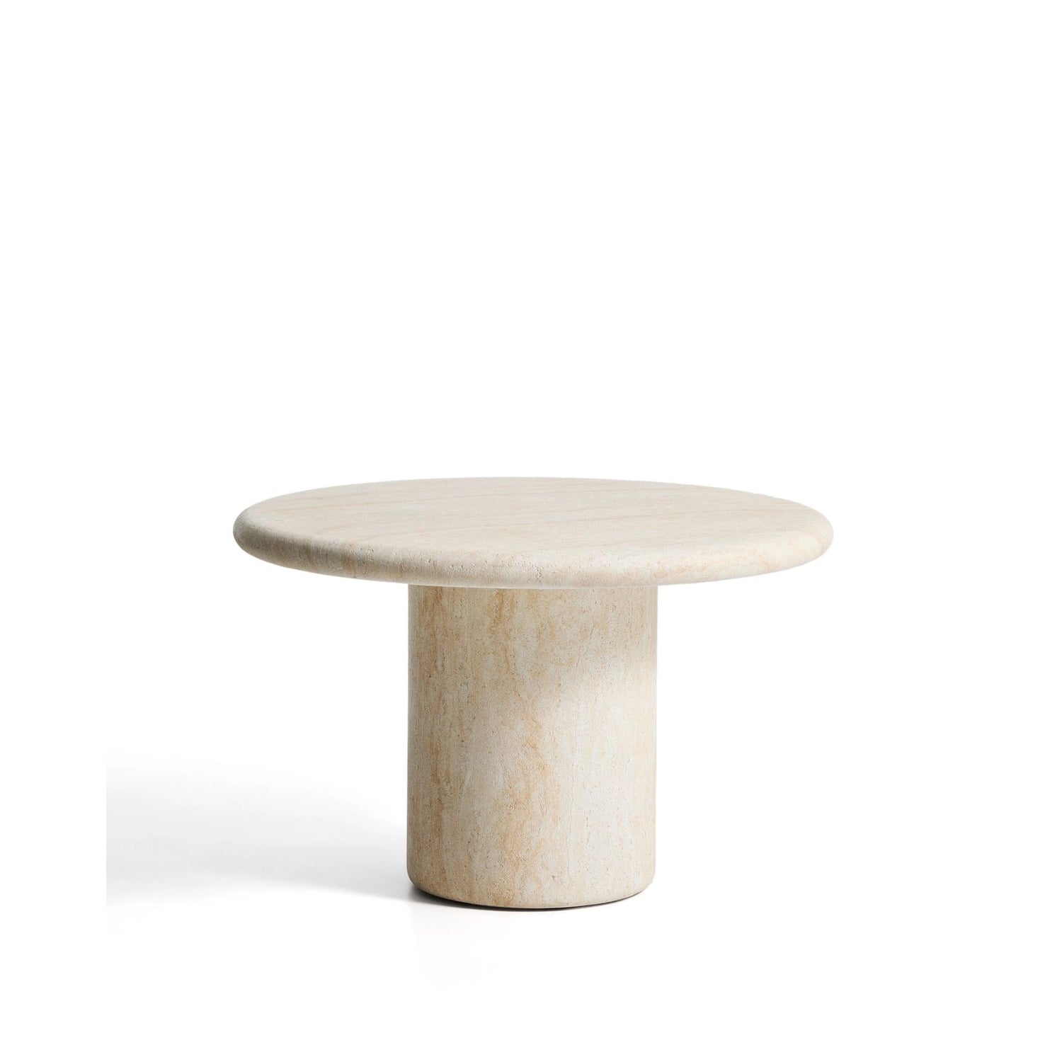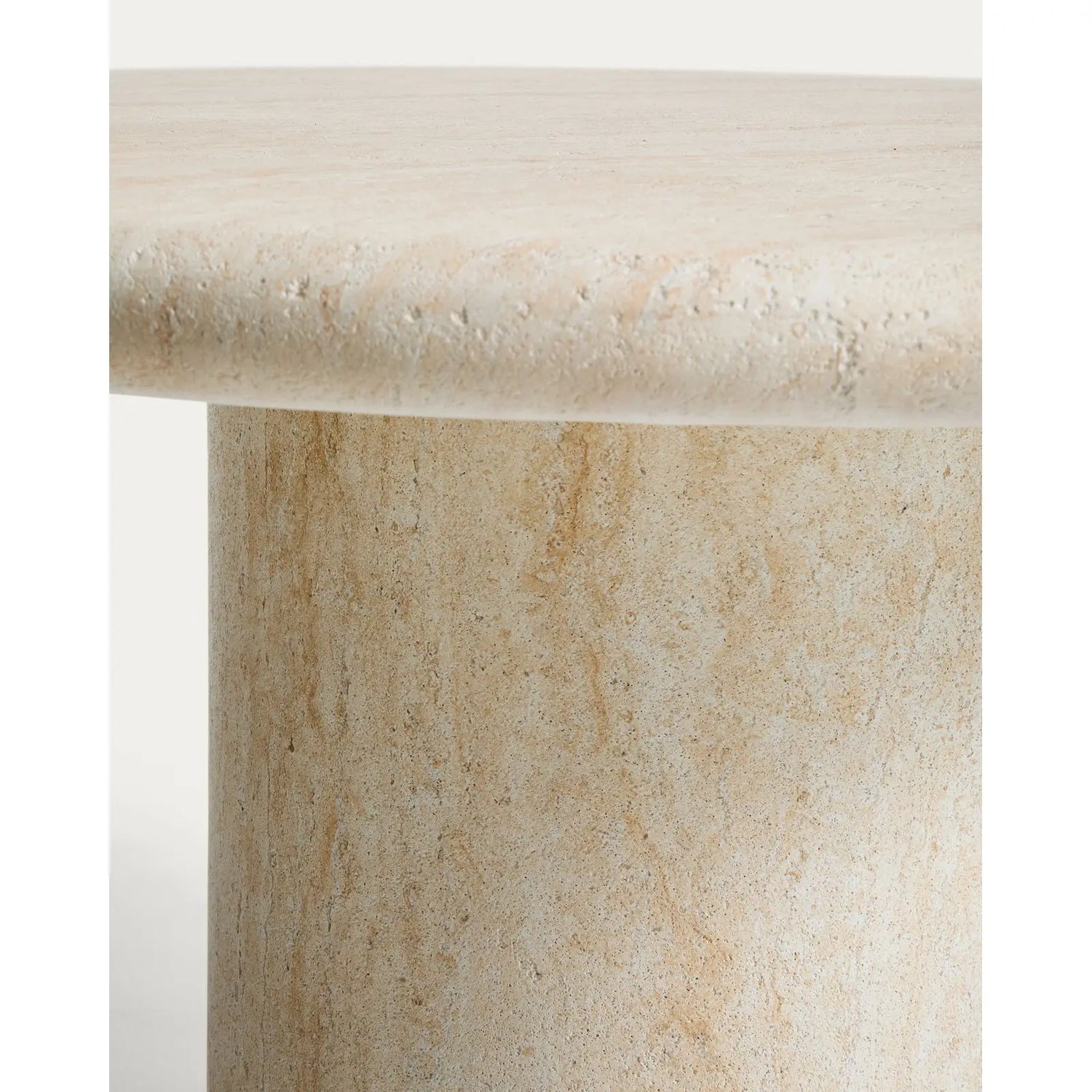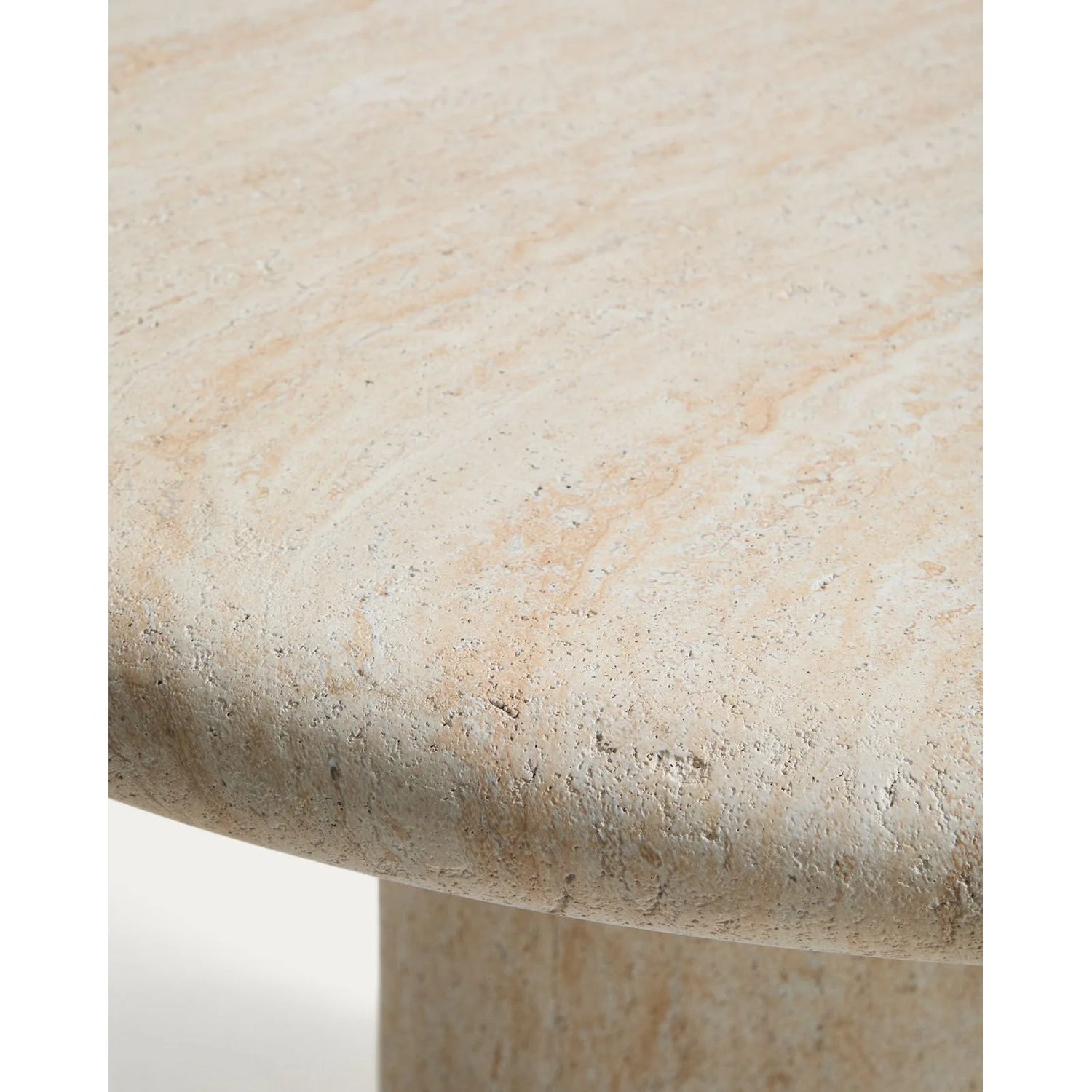 Runder Tisch Drasi aus Zement mit Finish in Travertinoptik, Ø 122 cm ist auf Lager und wird versandt, sobald es wieder verfügbar ist