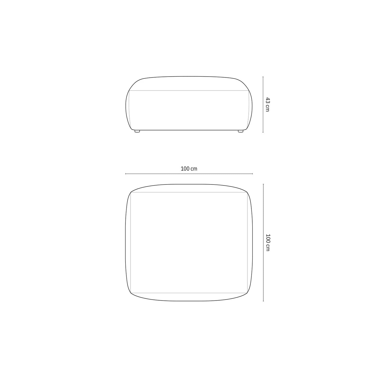 100cm x 100cm x 43cm (Länge x Breite x Höhe)
