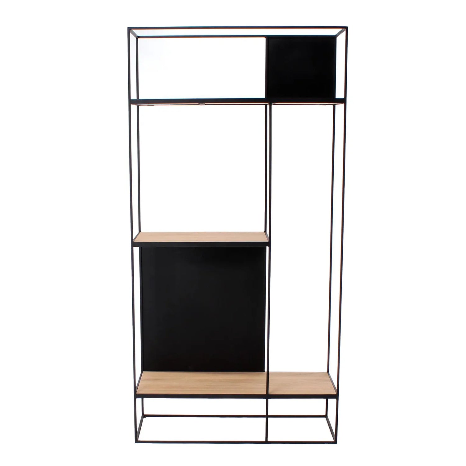 Die Rubic-Kollektion umfasst Regale und Tische im industriellen Stil. Die Regale bestehen aus einem schwarzen Metallrahmen und Ablageflächen aus naturbelassener Eiche.