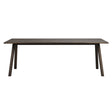 Clapperton ist ein massiver Holztisch aus brauner Eiche mit einer klaren Formensprache und hohem Designwert. Hergestellt in Europa mit Rücksicht auf Umwelt und Ästhetik. Das FSC®-zertifizierte Holz ist fingerverzinkt, um ein kraftvolles Gefühl und einen lebendigen Ausdruck zu schaffen, und mit Rubio-Öl behandelt, das die natürliche Struktur und einzigartige Farbton des Holzes hervorhebt. Das Design kombiniert gerade und abgerundete Linien auf harmonische Weise. Die ausgestellten Beine treffen sich in einem eleganten Schnitt, bei dem das Beinpaar ein gemeinsames Stück bildet, ein subtiler aber raffinierter Detail, das den Ausdruck des Tisches verstärkt. Das Ergebnis ist eine dynamische und leichte Formensprache, die Clapperton zu einem Blickfang im modernen Zuhause macht.