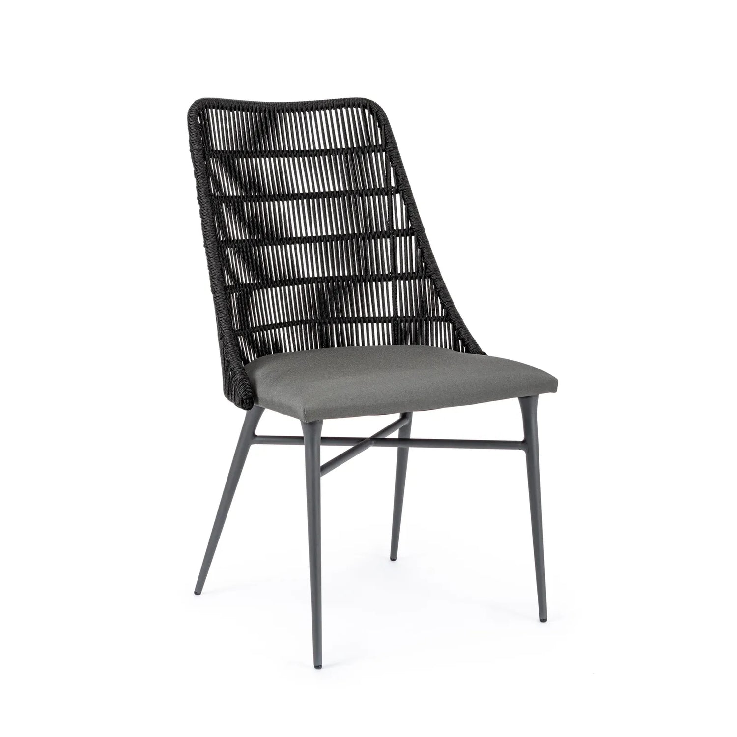 Gestell aus pulverbeschichtetem (Polyester) Aluminium. Wasserabweisendes und UV-beständiges Geflecht (Polypropylen) für Aussenbereiche. Sitz mit nicht abnehmbarem sonnenbeständigem Olefin-Bezug (100% Polypropylen). Polsterung aus (feuchtigkeitsbeständigem) Quick Dry Foam