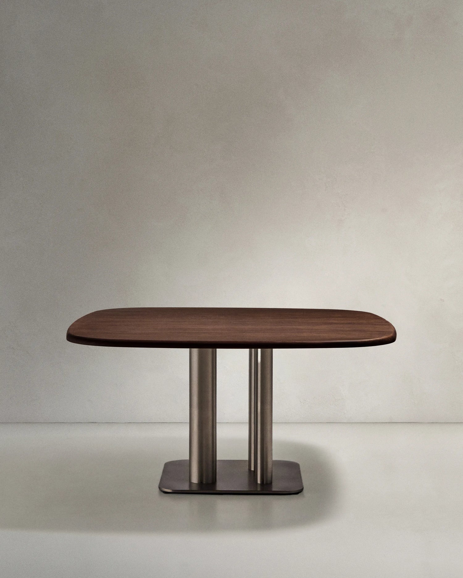 Tisch Melvar aus Nussbaumfurnier FSC 100 % und Beine mit gebürsteter Edelstahlbasis 150 x 150 cm
