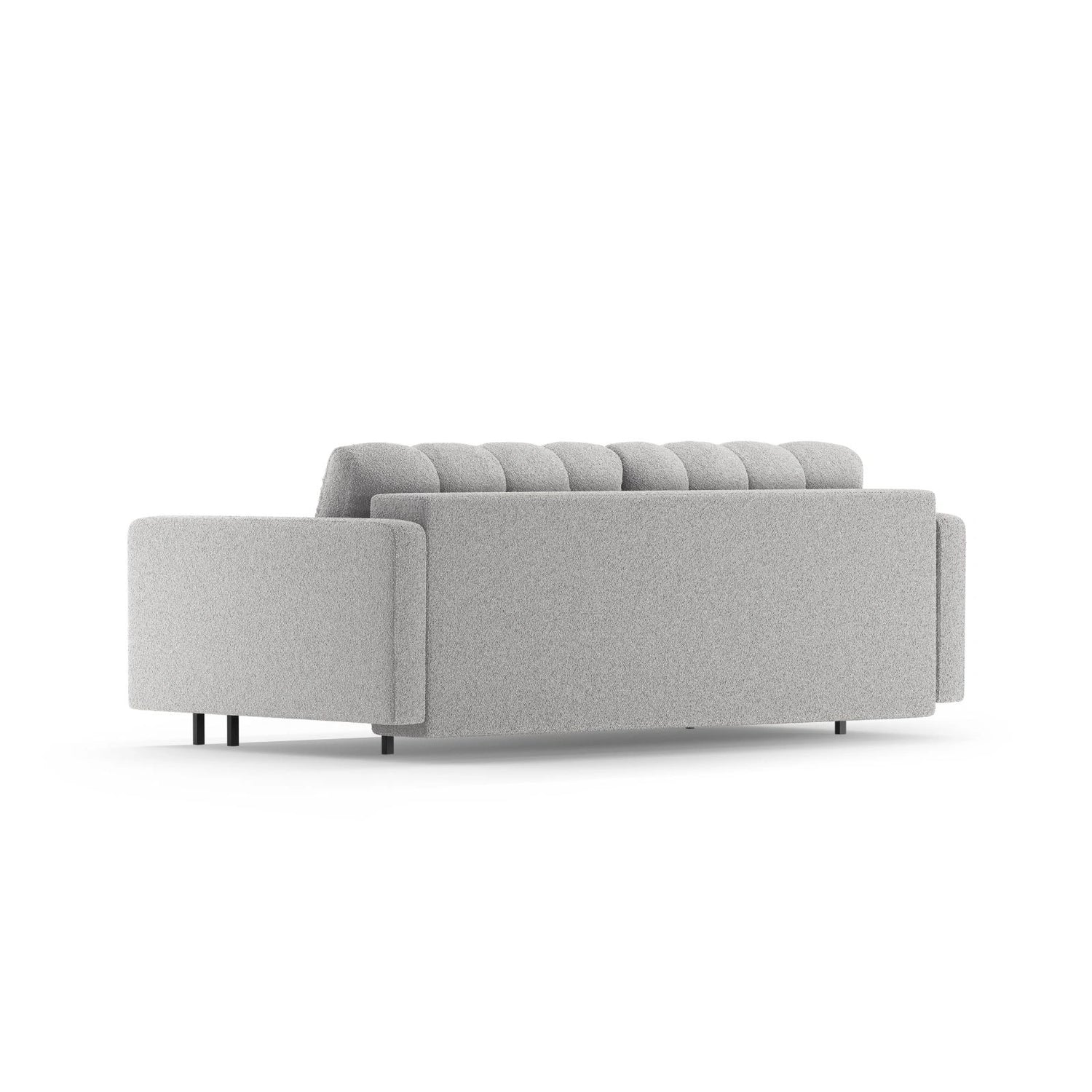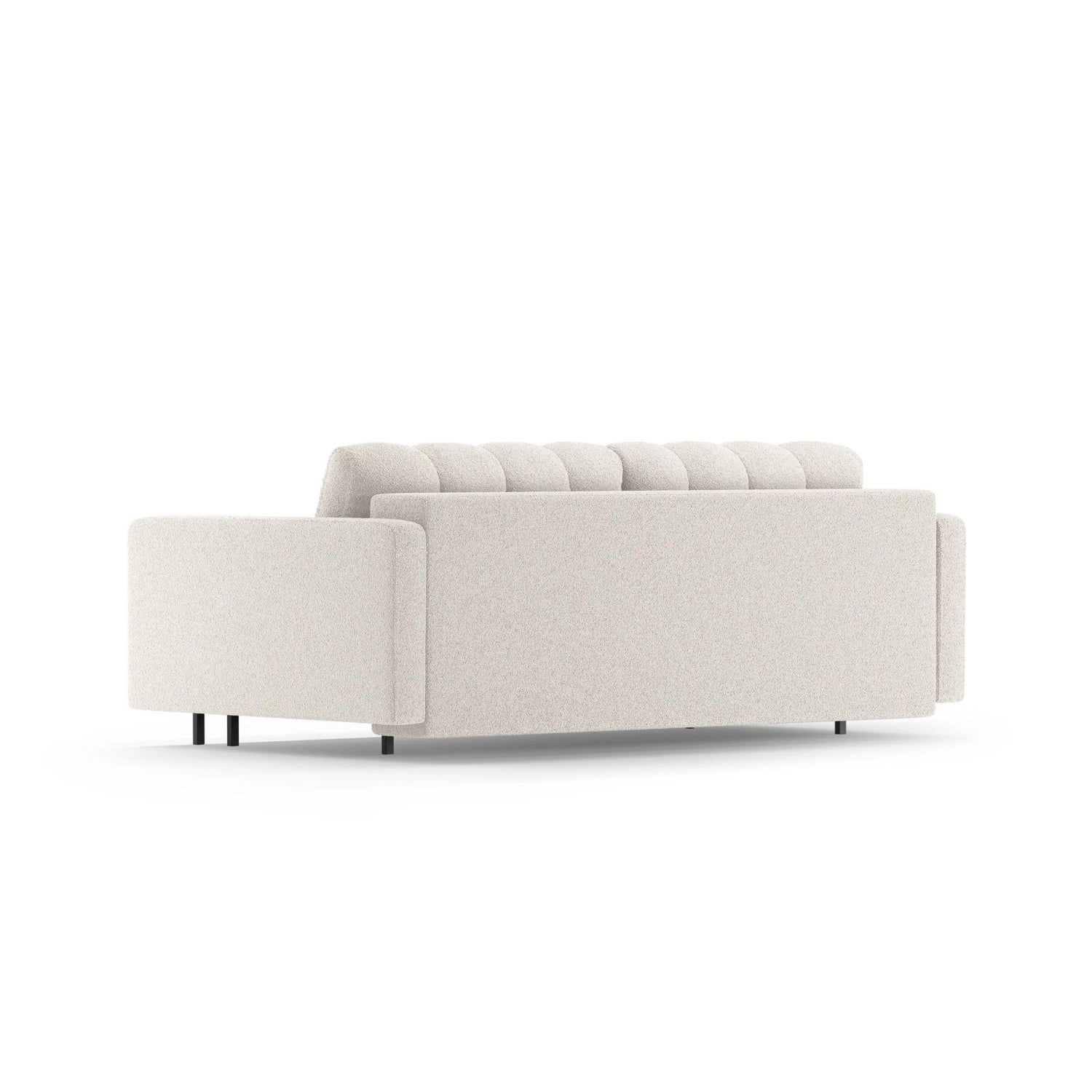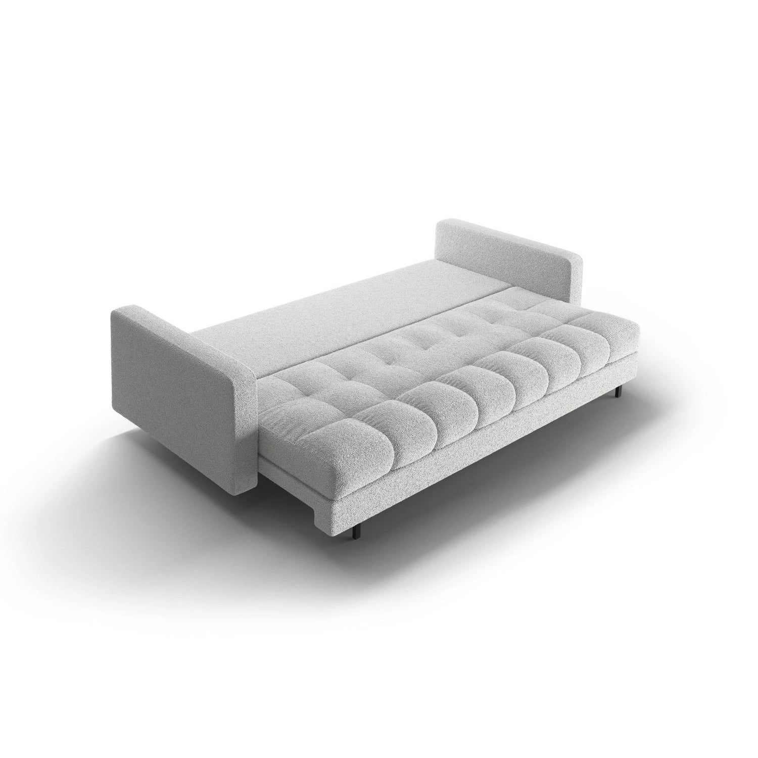 Bali 3-Sitzer Sofa mit Schlaffunktion und Stauraum, aus Samt, Boucle oder Strukturstoff, 222x84x105 cm - Boucle (Baloo 2073), Weiß // Beine Schwarzes Metall ist auf Lager und wird versandt, sobald es wieder verfügbar ist
