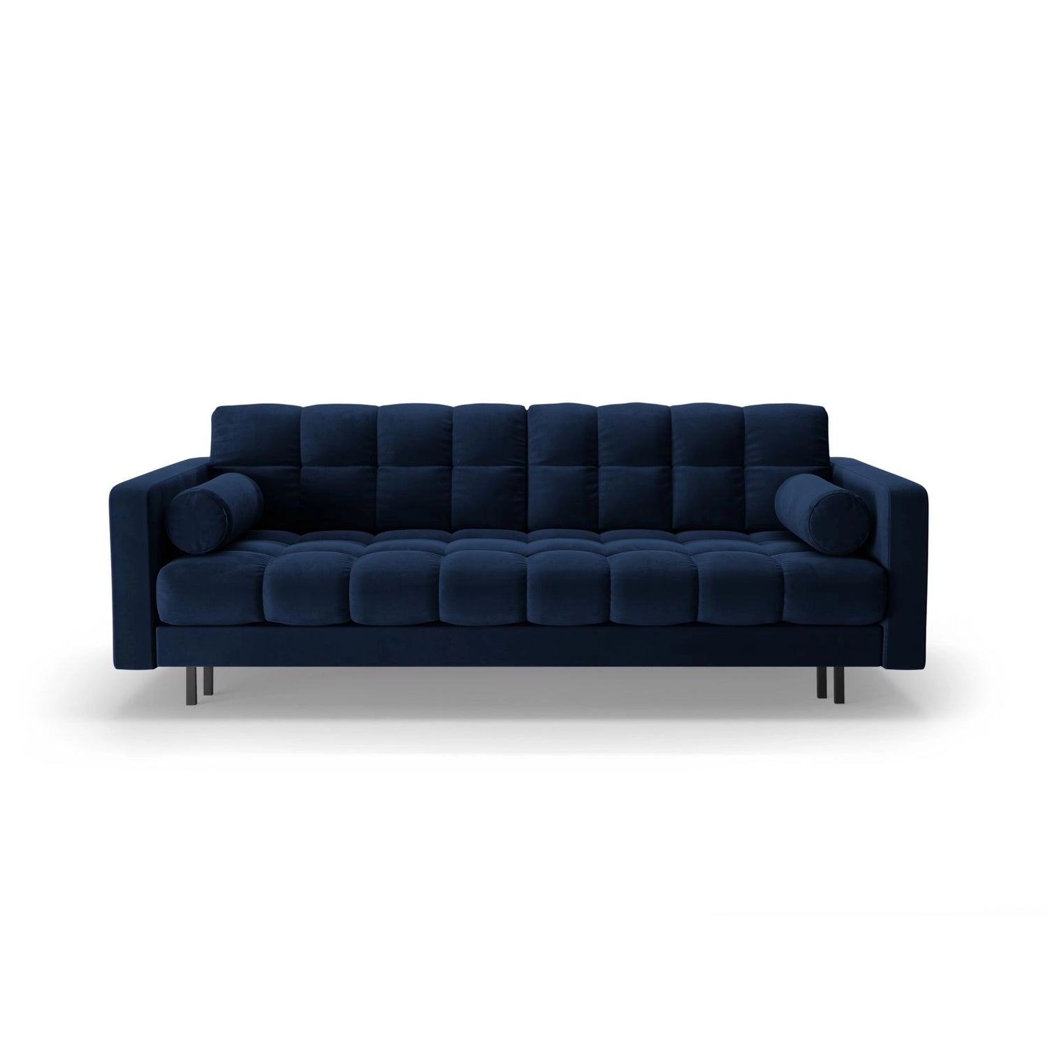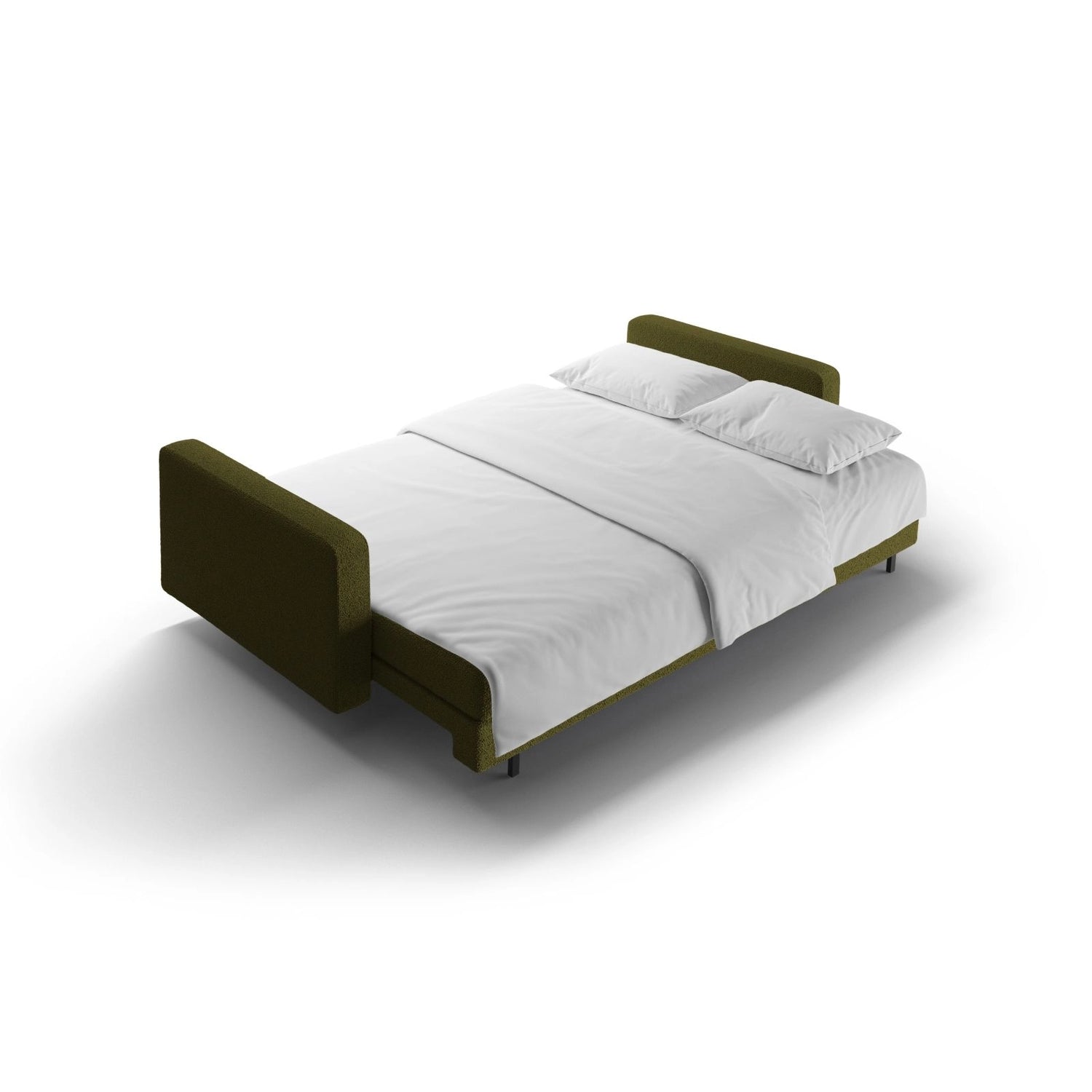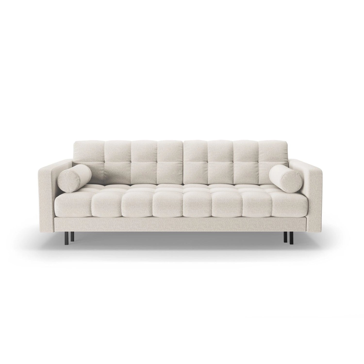 Bali 3-Sitzer Sofa mit Schlaffunktion und Stauraum, aus Samt, Boucle oder Strukturstoff, 222x84x105 cm - Boucle (Baloo 2073), Weiß // Beine Schwarzes Metall ist auf Lager und wird versandt, sobald es wieder verfügbar ist