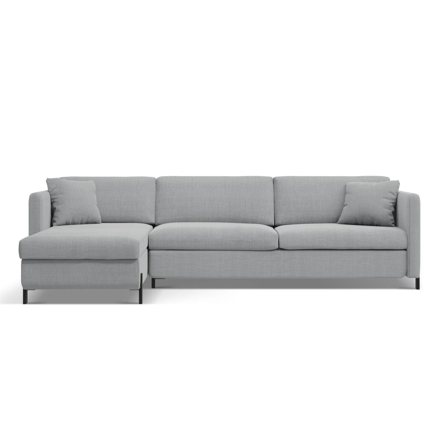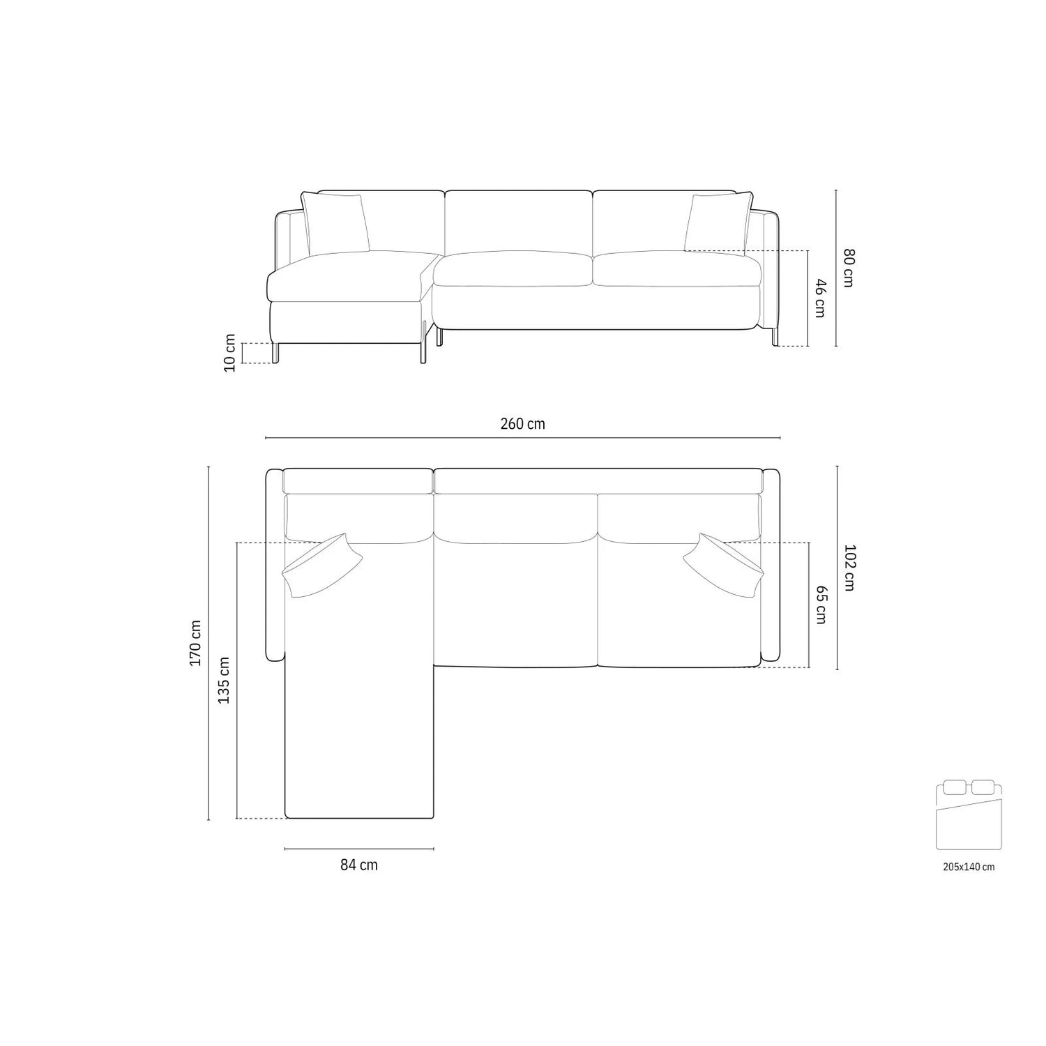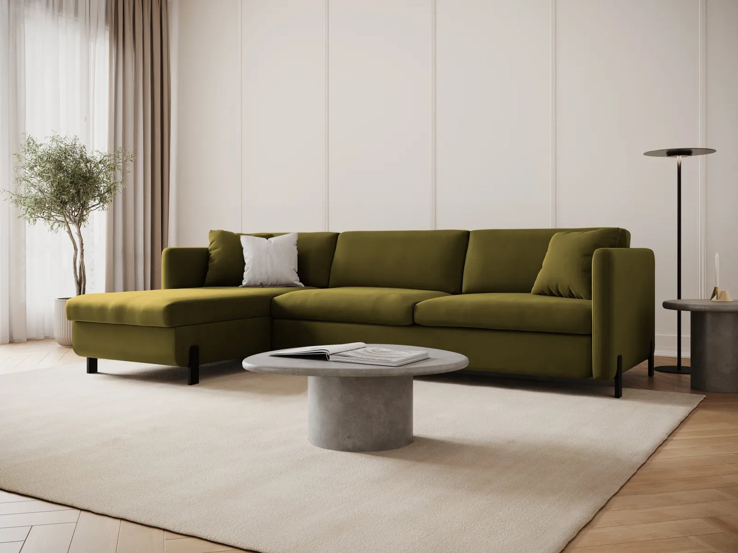 Das 4-Sitzer Ecksofa Gloria von Micadoni (linke Seite) hat einen klassischen Look mit modernen Akzenten, so dass es sich hervorragend in Innenräumen macht. Es zeichnet sich durch seine leichte Silhouette, die subtilen Beine und die schmalen Armlehnen aus. Die federnden Kissen auf den Sitzen und Rückenlehnen sorgen für eine angenehme Entspannung. Die besten Gründe, sich für das Sofa Gloria zu entscheiden - Sie werden die perfekte Balance zwischen Flexibilität und Unterstützung auf dem mittelweichen Sitz entdecken. - Das Sofa ist verstellbar und kann als zusätzliches Bett in Ihrer Wohnung verwendet werden. - Der Rapido-Klappmechanismus ist sehr bequem. - Ein bequemer Schlaf, fast wie in einem Bett, wird durch die ebene Oberfläche der Matratze gewährleistet. - Der Container unter dem Sitz der Chaiselongue bietet zusätzlichen Stauraum. - Hochwertige Materialien und ein präziser und zuverlässiger Mechanismus garantieren eine lange Nutzung. Schlafunktion, Bettkasten und Dekokissen sind inbegriffen.