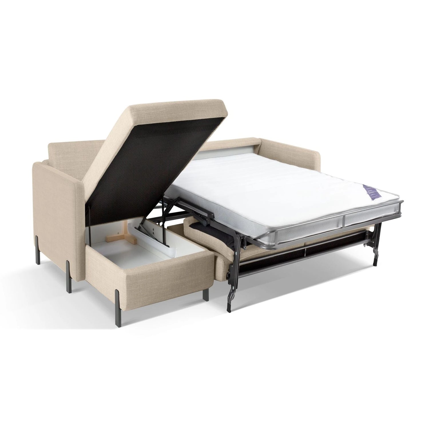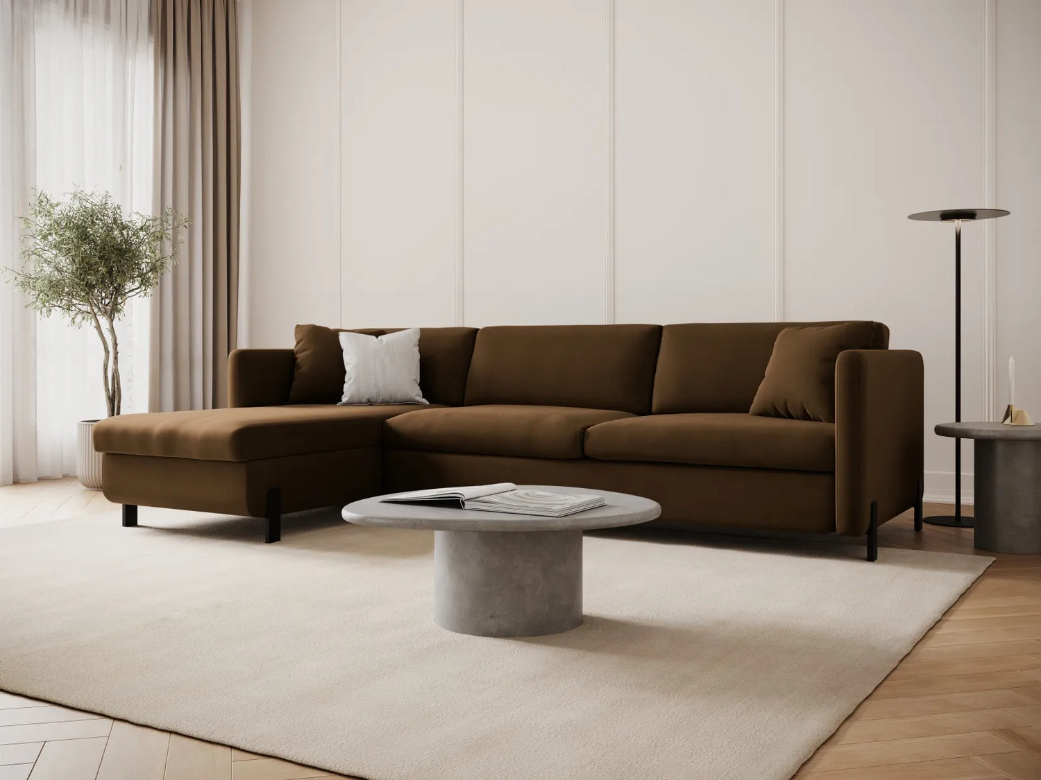 Gloria 4-Sitzer Ecksofa Links, ausklappbar, mit Schlaffunktion, mit Bezug aus Samt oder Strukturstoff, 260x170 cm - Strukturierter Stoff (Bjo24), Beige ist auf Lager und wird versandt, sobald es wieder verfügbar ist