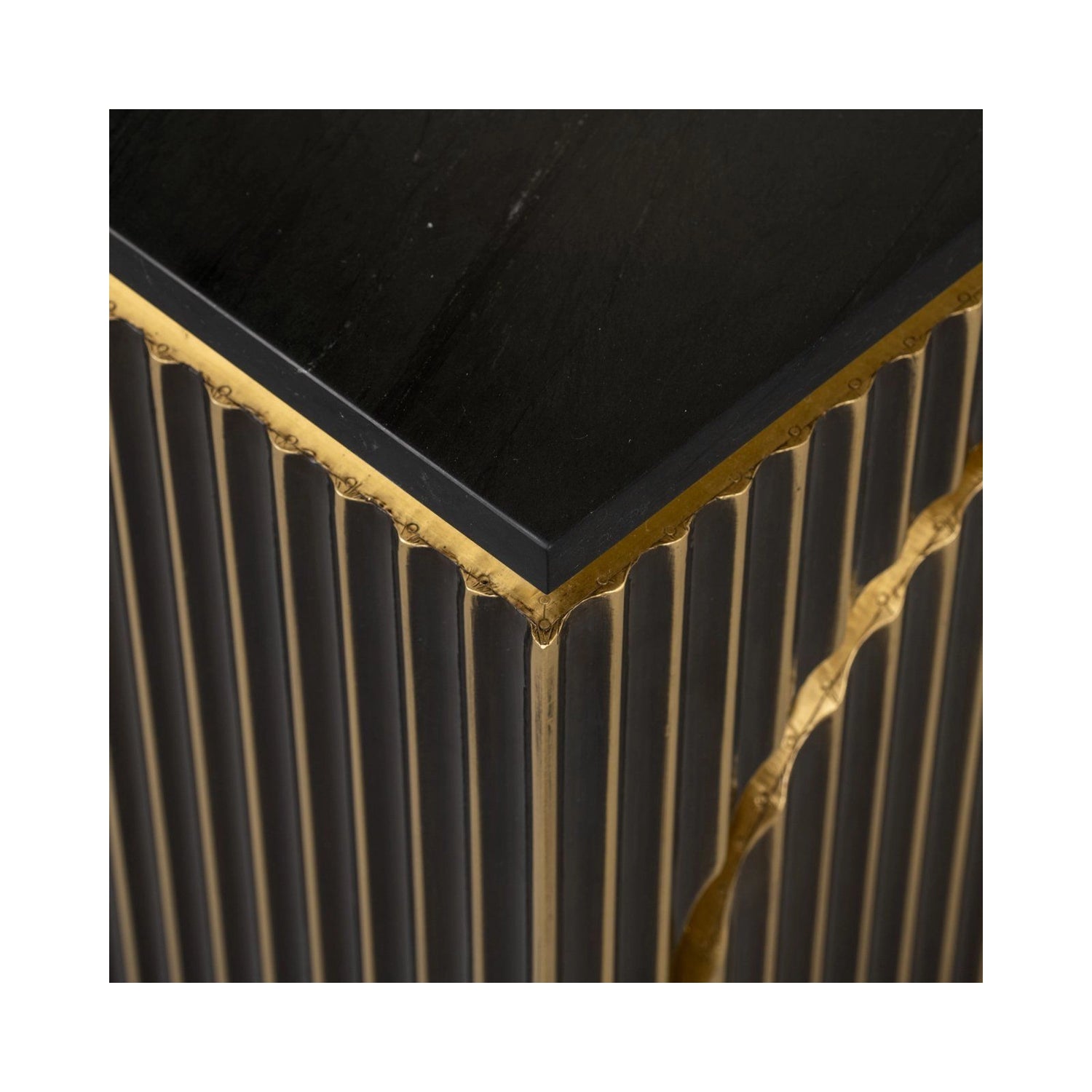 Nachttisch Les Arcs aus Marine-Marmor und Messing in brushed gold, 50x43x60 cm