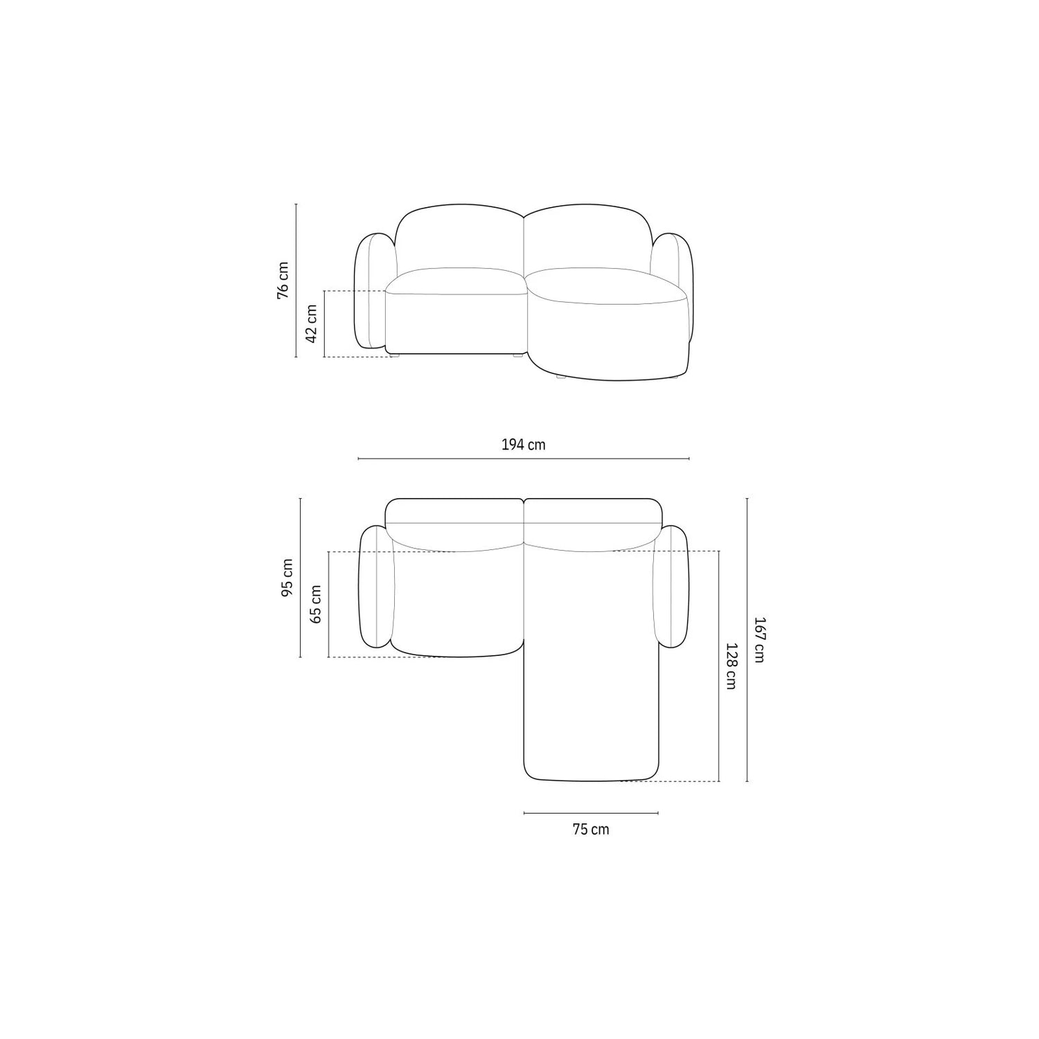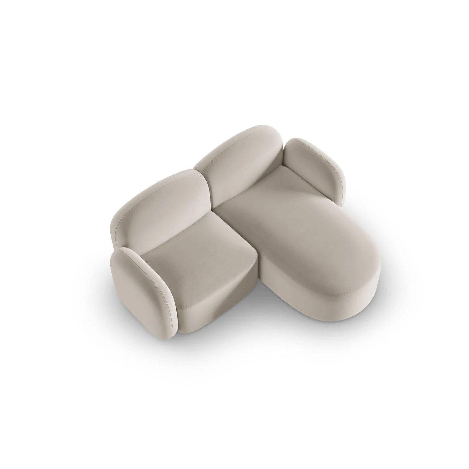 Gestalten Sie Ihr kleines Wohnzimmer optimal mit dem kleinen 3-Sitzer Ecksofa Blair von Micadoni und passen Sie es nach Ihren Bedürfnissen an.. Die außergewöhnlichen Möbel der Blair-Kollektion verbinden auf innovative Weise Minimalismus und abgerundete Formen. Ihre klassischen und dennoch schlichten Silhouetten sind organisch, weich und dadurch sehr gemütlich. Anstelle von eckigen Kanten haben die einzelnen Elemente abgerundete Formen, in die du dich sofort einkuscheln möchtest. Die niedrigen, charmanten Rückenlehnen laden zum entspannten Ausruhen ein und bieten vollen Komfort. Die tiefen, sanft geschwungenen Sitzflächen haben die ideale Höhe. Sie sind mit festem und elastischem Schaumstoff gefüllt. Die Besonderheit dieser Linie liegt in der konsequenten Rundung aller Elemente, von den Sitzflächen bis zu den Armlehnen. Blair ist eine einzigartige Sofaserie, die deinen individuellen Stil betont und dem Raum einen modernen, aber auch leicht nostalgischen Charakter verleiht.