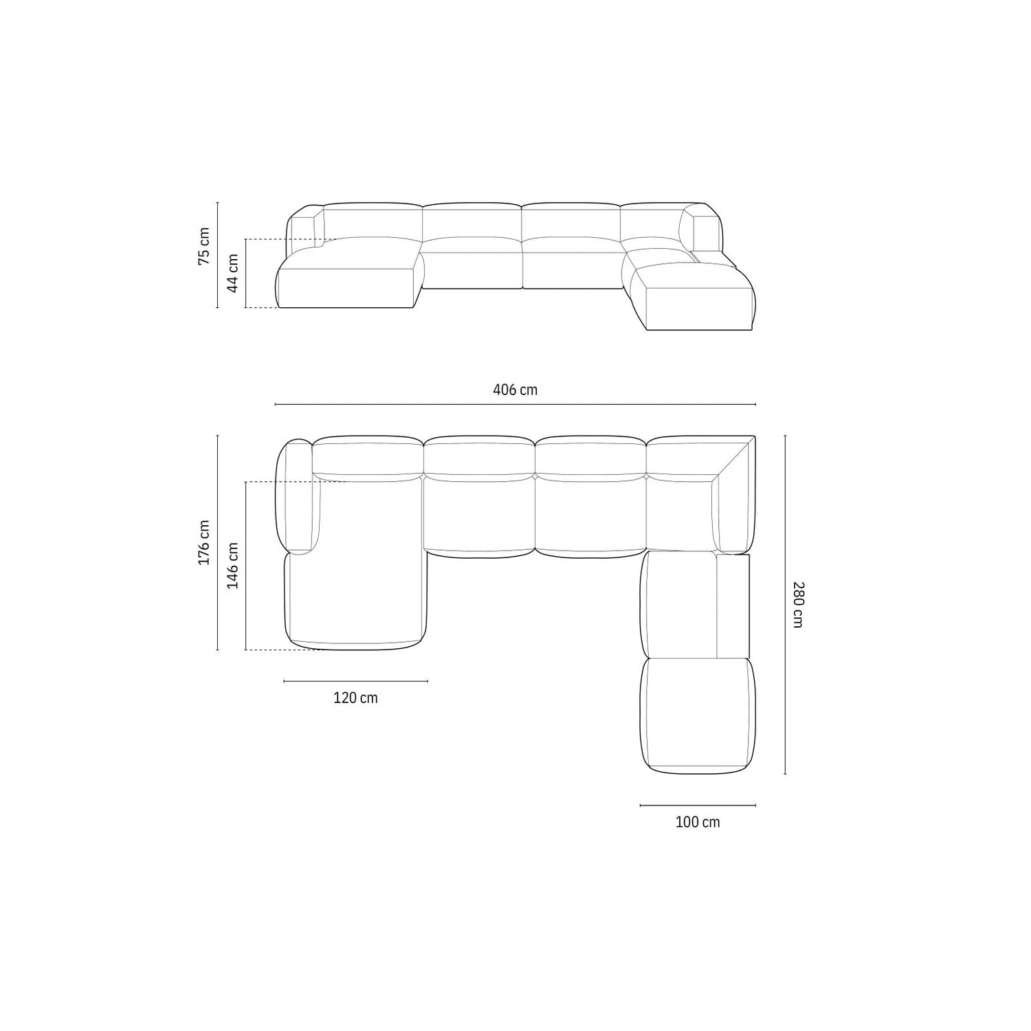 Das Martina-Panoramasofa ist eine Kombination aus Weichheit und modernem Design. Die von der Wolke inspirierte Form und das modulare Design machen das Sofa perfekt für die Bedürfnisse derjenigen, die Komfort und Stil schätzen. - Die Sitze und Rückenlehnen sind außergewöhnlich weich, was sich in einem angenehmen Gefühl der Entspannung niederschlägt. - Sie können zwischen zwei Sitztiefen wählen: 76 oder 90 cm, damit Sie das Sofa so einstellen können, wie Sie sich gerne entspannen. - Zwei Arten von Schaumstofffüllungen und gewellte Federn garantieren eine flexible Unterstützung. - Die Module werden durch die bewährten "Krokodil"-Verbindungen miteinander verbunden. - Optionale Kissen (separat erhältlich) bieten zusätzlichen Halt und einen dekorativen Akzent. Kissen gehören nicht zum Set.
